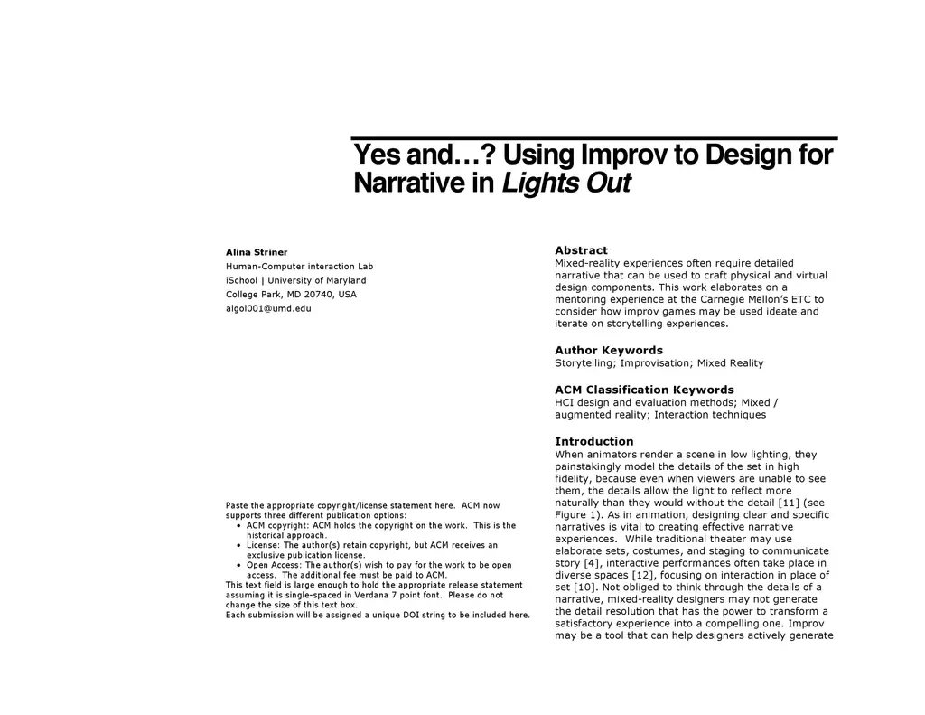 Yes and...? Using Improv to Design for Narrative in Lights Out