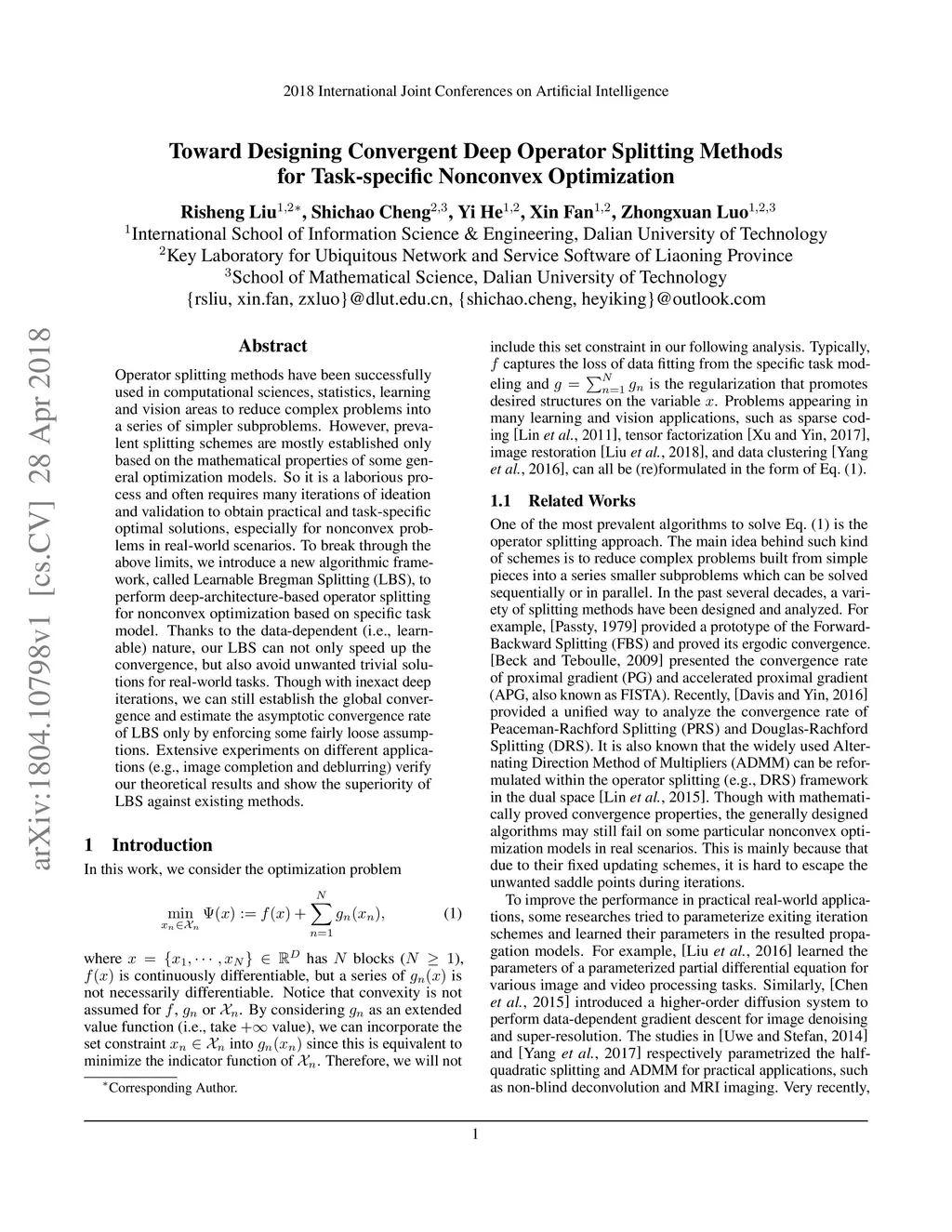 Operator splitting methods have been successfully used in computational sciences, statistics, learning and vision areas to reduce complex problems into a series of simpler subproblems. However, prevalent splitting schemes are mostly established only based on the mathematical properties of some general optimization models. So it is a laborious process and often requires many iterations of ideation and validation to obtain practical and task-specific optimal solutions, especially for nonconvex problems in real-world scenarios. To break through the above limits, we introduce a new algorithmic framework, called Learnable Bregman Splitting (LBS), to perform deep-architecture-based operator splitting for nonconvex optimization based on specific task model. Thanks to the data-dependent (i.e., learnable) nature, our LBS can not only speed up the convergence, but also avoid unwanted trivial solutions for real-world tasks. Though with inexact deep iterations, we can still establish the global convergence and estimate the asymptotic convergence rate of LBS only by enforcing some fairly loose assumptions. Extensive experiments on different applications (e.g., image completion and deblurring) verify our theoretical results and show the superiority of LBS against existing methods.