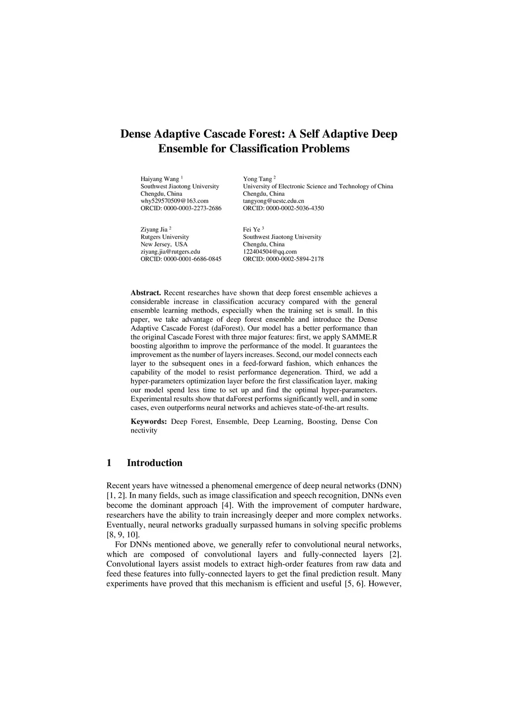 Dense Adaptive Cascade Forest: A Self Adaptive Deep Ensemble for