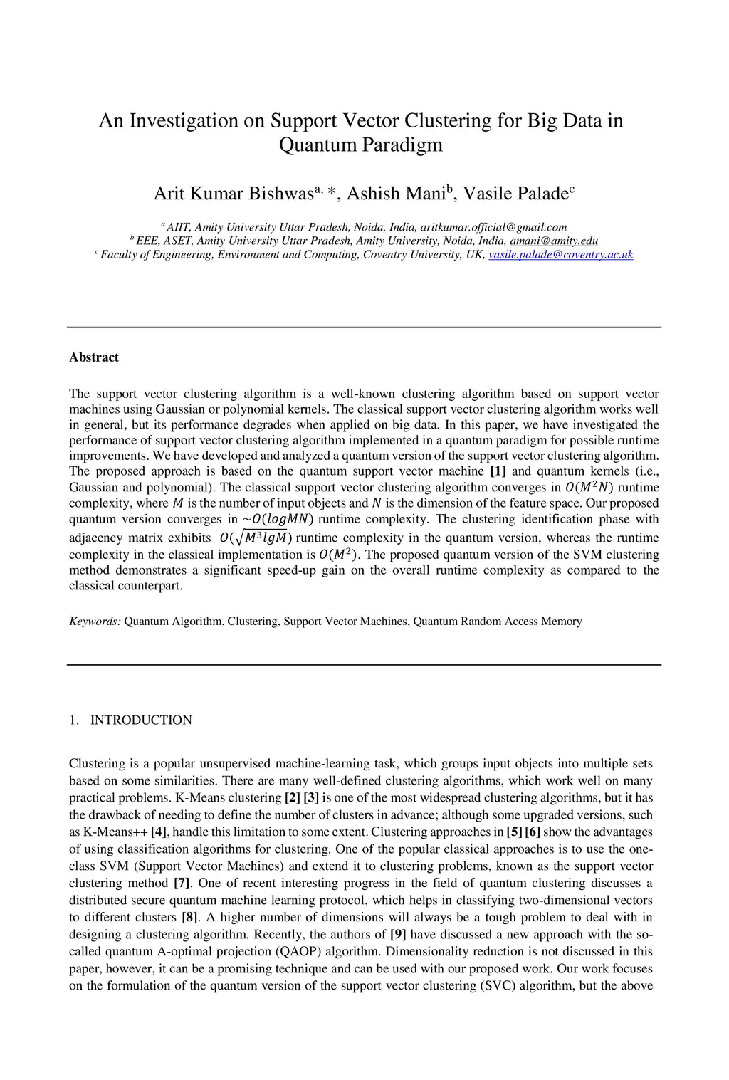 An Investigation on Support Vector Clustering for Big Data in Quantum