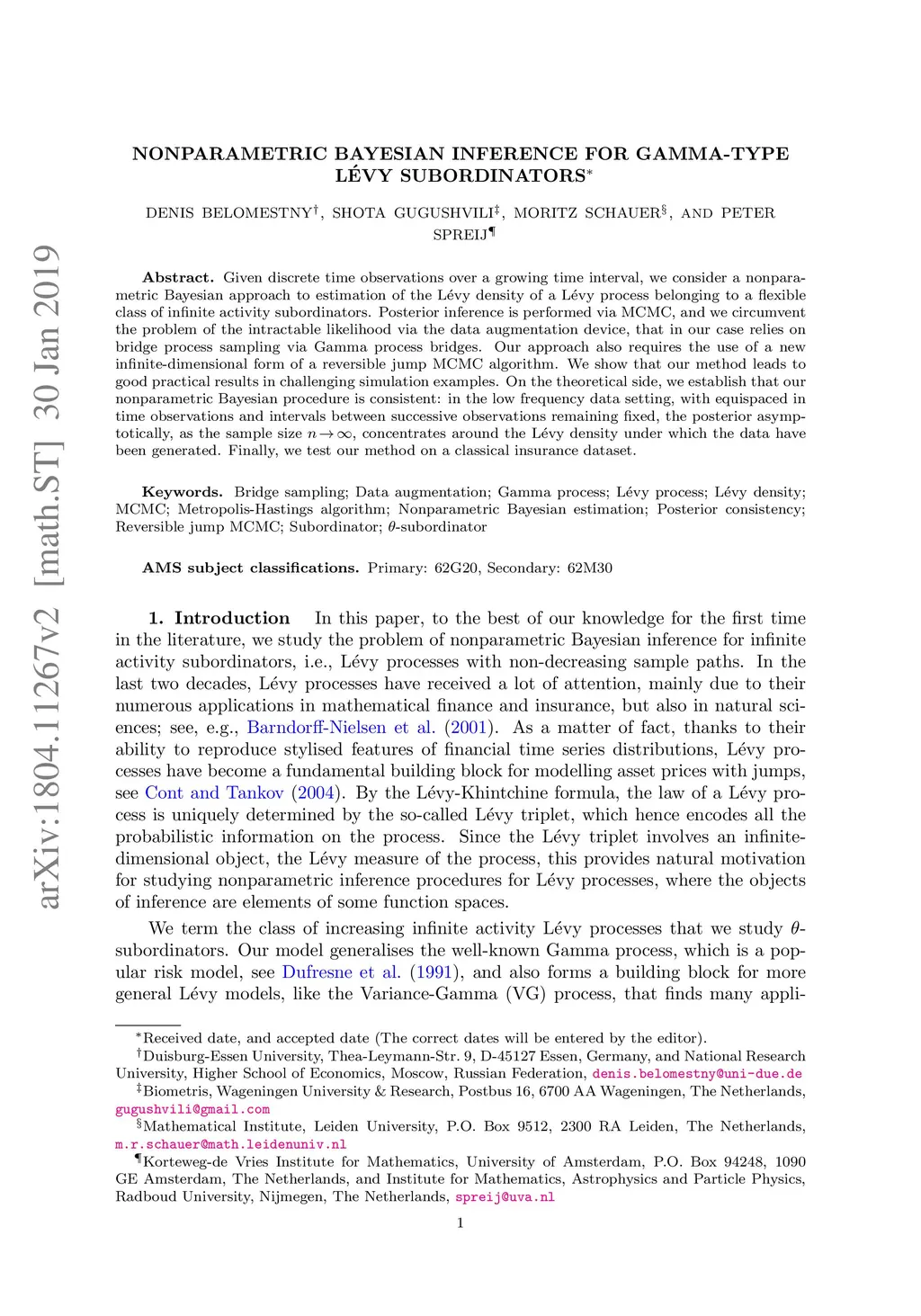 Nonparametric Bayesian inference for Gamma-type Lévy subordinators