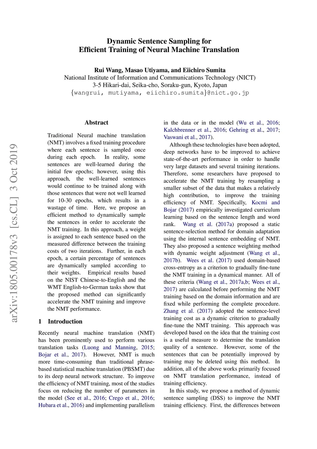 Dynamic Sentence Sampling for Efficient Training of Neural Machine