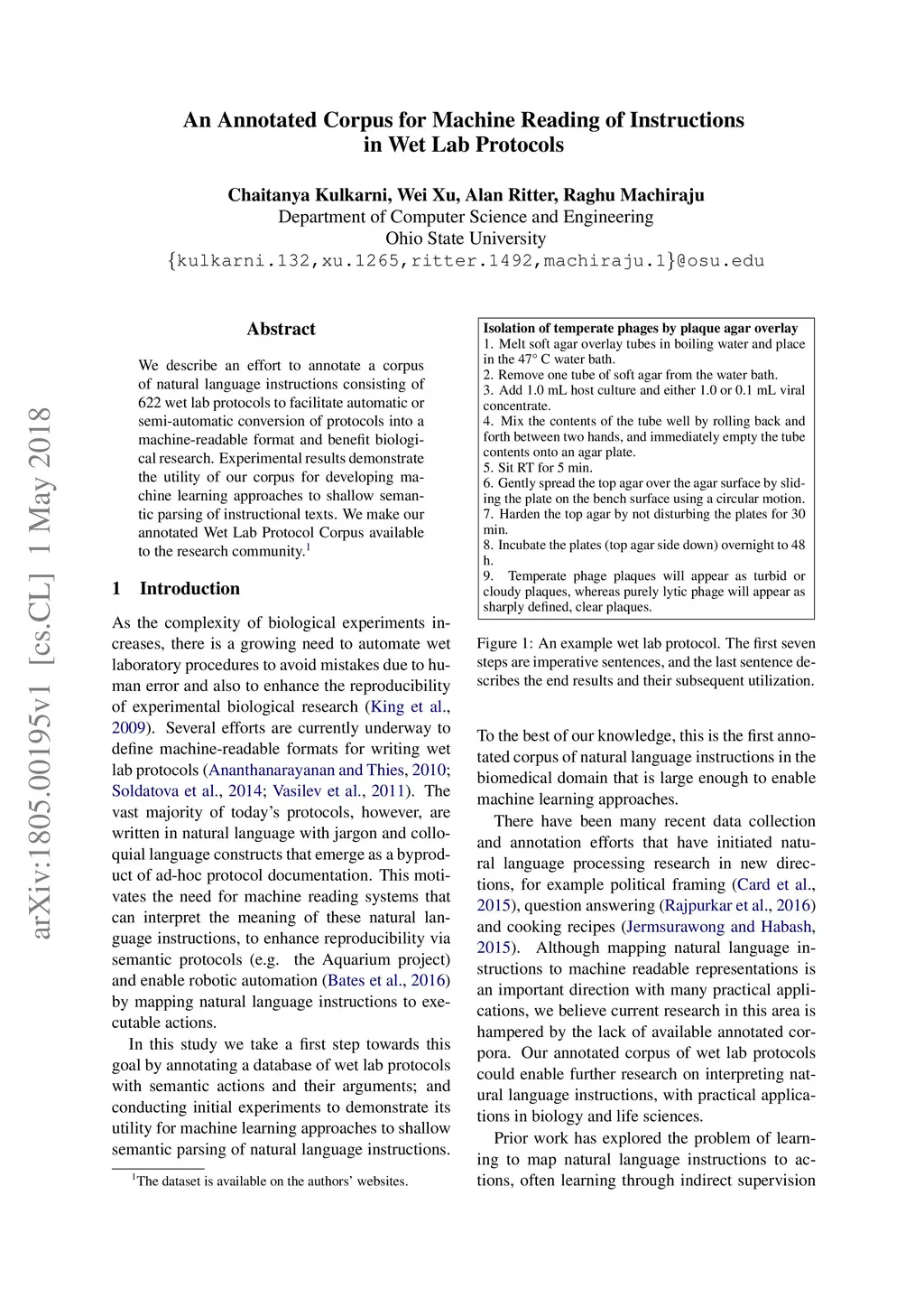 An Annotated Corpus for Machine Reading of Instructions in Wet Lab