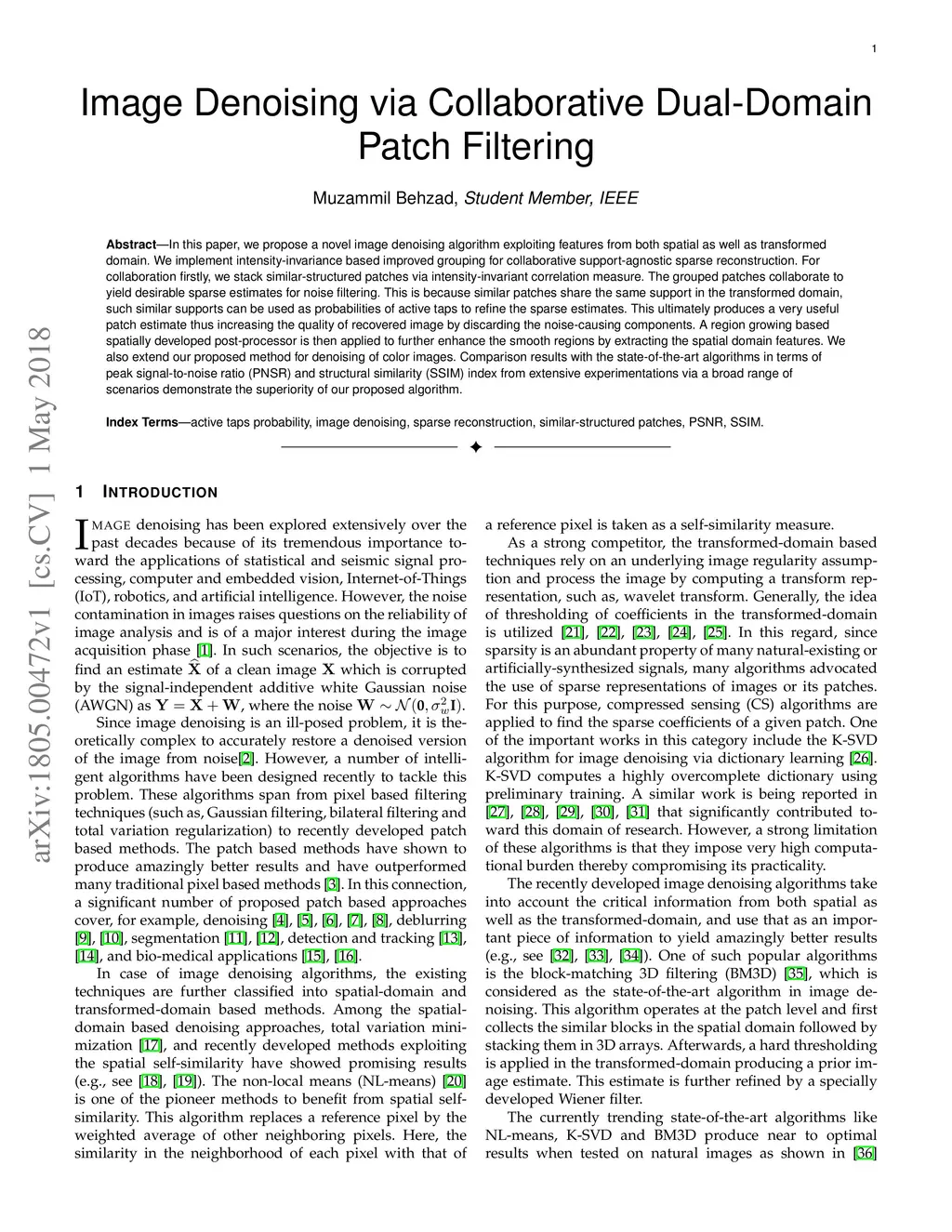 Image Denoising via Collaborative Dual-Domain Patch Filtering