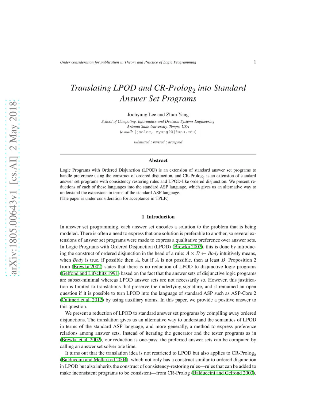 Translating LPOD and CR-Prolog2 into Standard Answer Set Programs
