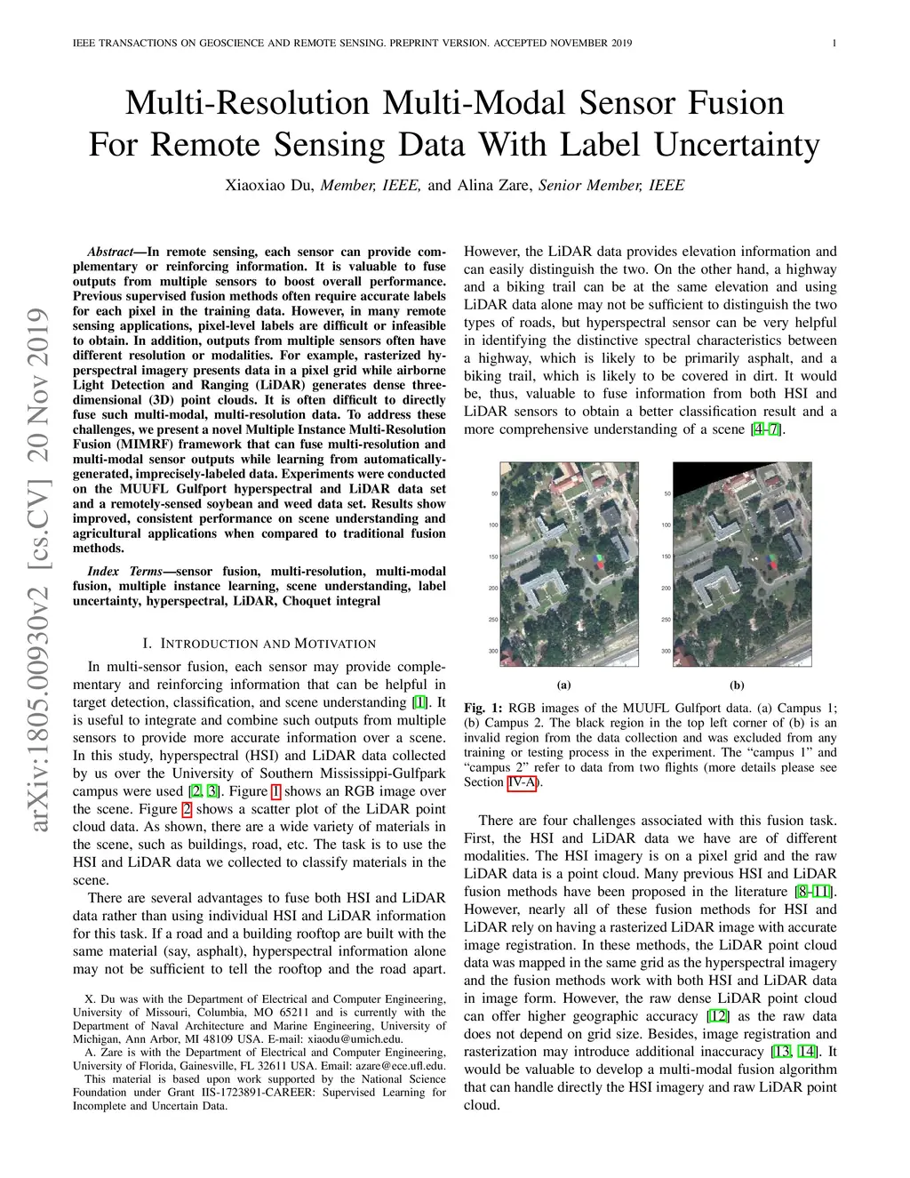 Multi-Resolution Multi-Modal Sensor Fusion For Remote Sensing Data With