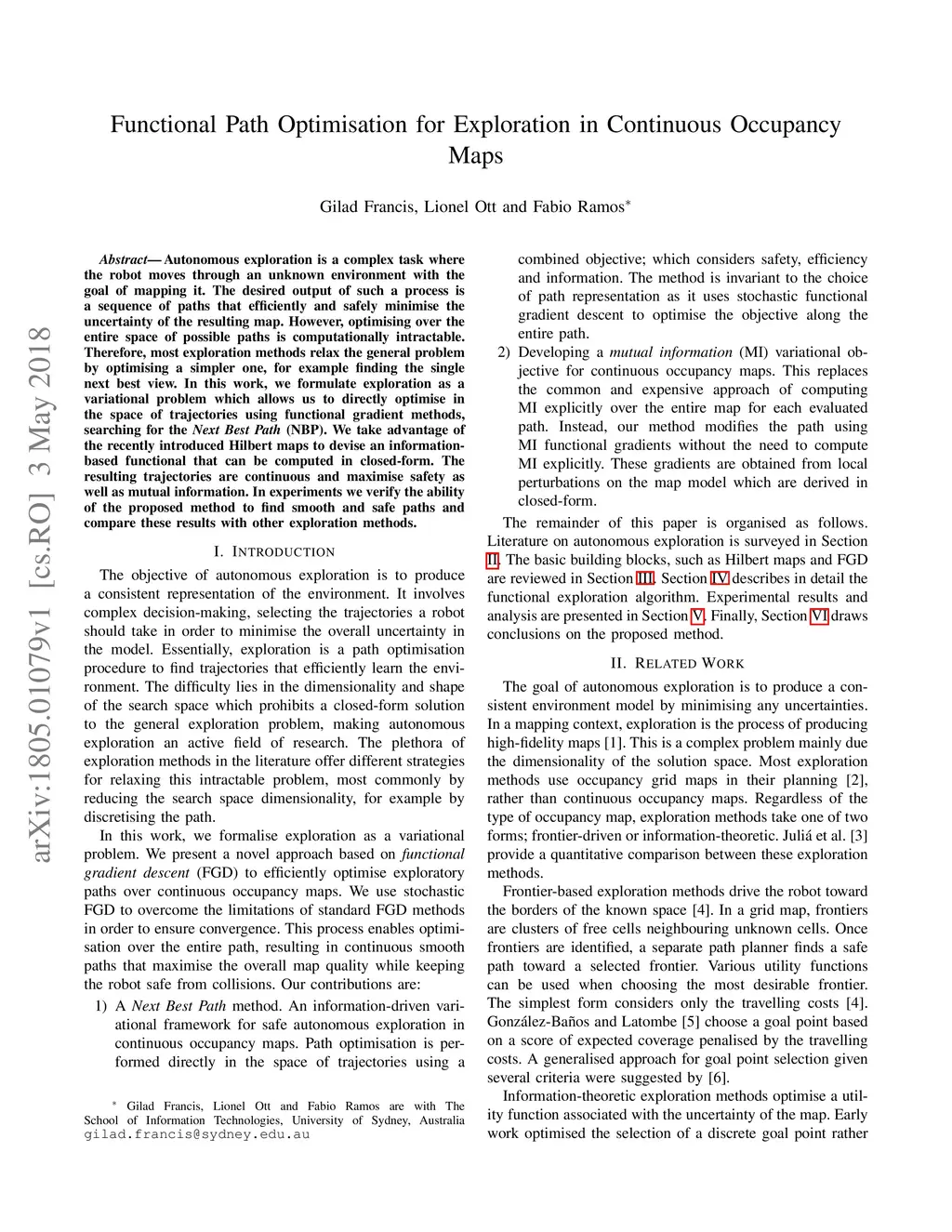 Functional Path Optimisation for Exploration in Continuous Occupancy