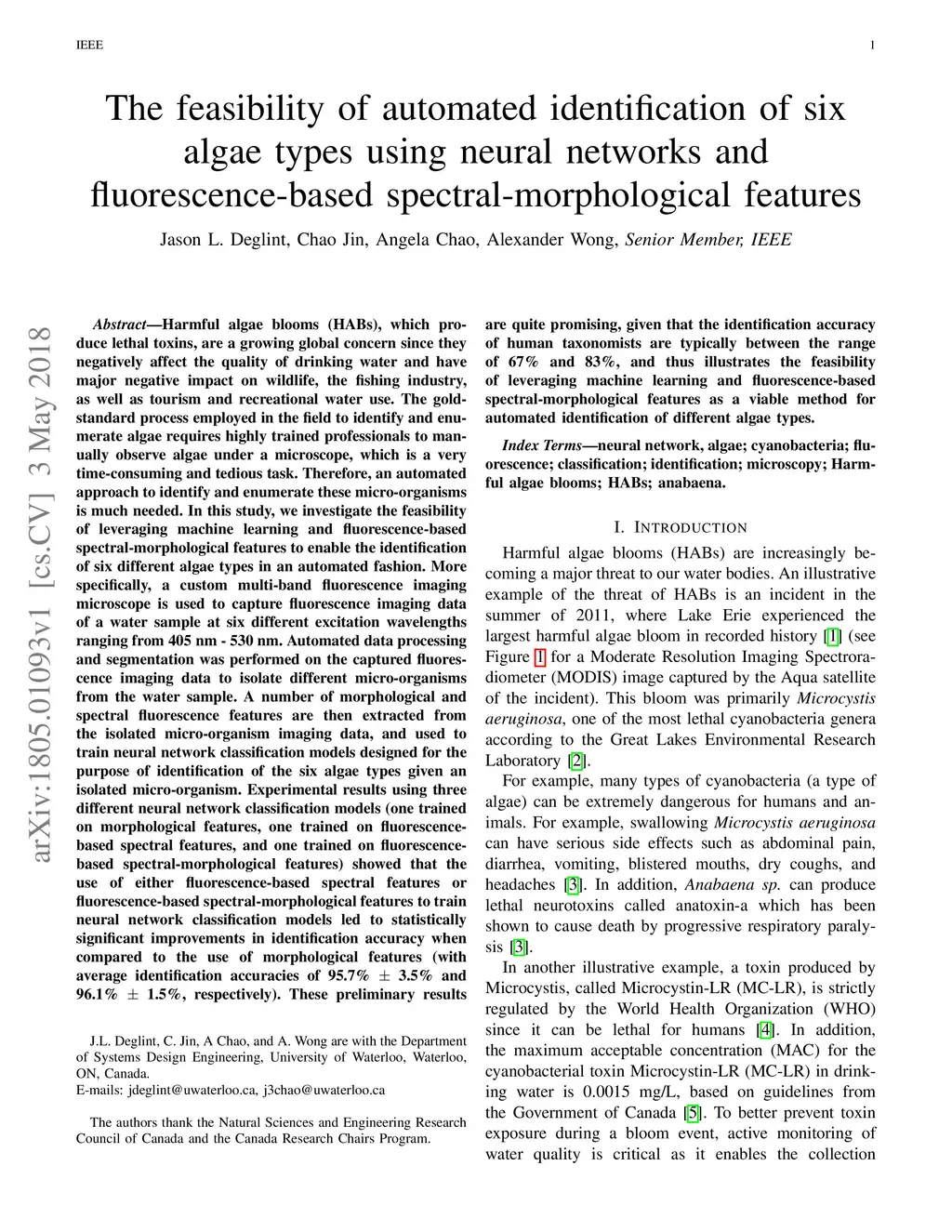 The feasibility of automated identification of six algae types using