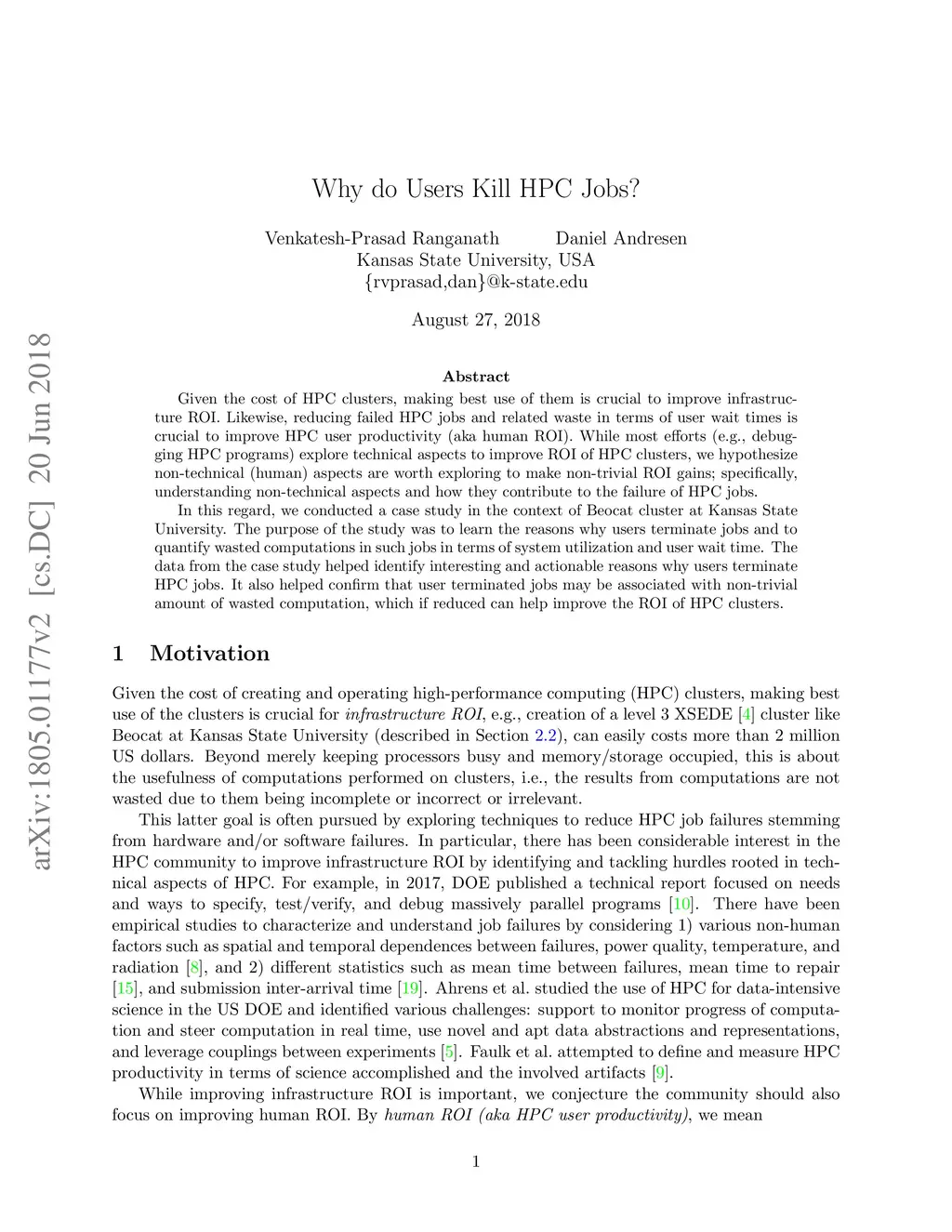 Given the cost of HPC clusters, making best use of them is crucial to improve infrastructure ROI. Likewise, reducing failed HPC jobs and related waste in terms of user wait times is crucial to improve HPC user productivity (aka human ROI). While most efforts (e.g.,debugging HPC programs) explore technical aspects to improve ROI of HPC clusters, we hypothesize non-technical (human) aspects are worth exploring to make non-trivial ROI gains; specifically, understanding non-technical aspects and how they contribute to the failure of HPC jobs. In this regard, we conducted a case study in the context of Beocat cluster at Kansas State University. The purpose of the study was to learn the reasons why users terminate jobs and to quantify wasted computations in such jobs in terms of system utilization and user wait time. The data from the case study helped identify interesting and actionable reasons why users terminate HPC jobs. It also helped confirm that user terminated jobs may be associated with non-trivial amount of wasted computation, which if reduced can help improve the ROI of HPC clusters.