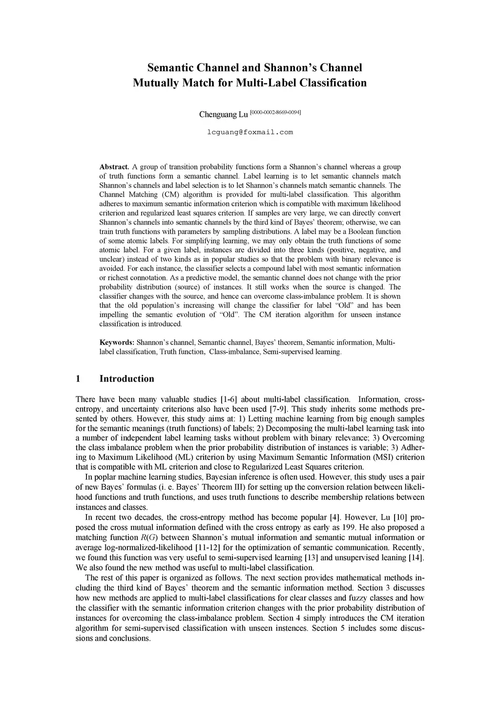A group of transition probability functions form a Shannon's channel whereas a group of truth functions form a semantic channel. Label learning is to let semantic channels match Shannon's channels and label selection is to let Shannon's channels match semantic channels. The Channel Matching (CM) algorithm is provided for multi-label classification. This algorithm adheres to maximum semantic information criterion which is compatible with maximum likelihood criterion and regularized least squares criterion. If samples are very large, we can directly convert Shannon's channels into semantic channels by the third kind of Bayes' theorem; otherwise, we can train truth functions with parameters by sampling distributions. A label may be a Boolean function of some atomic labels. For simplifying learning, we may only obtain the truth functions of some atomic label. For a given label, instances are divided into three kinds (positive, negative, and unclear) instead of two kinds as in popular studies so that the problem with binary relevance is avoided. For each instance, the classifier selects a compound label with most semantic information or richest connotation. As a predictive model, the semantic channel does not change with the prior probability distribution (source) of instances. It still works when the source is changed. The classifier changes with the source, and hence can overcome class-imbalance problem. It is shown that the old population's increasing will change the classifier for label "Old" and has been impelling the semantic evolution of "Old". The CM iteration algorithm for unseen instance classification is introduced.