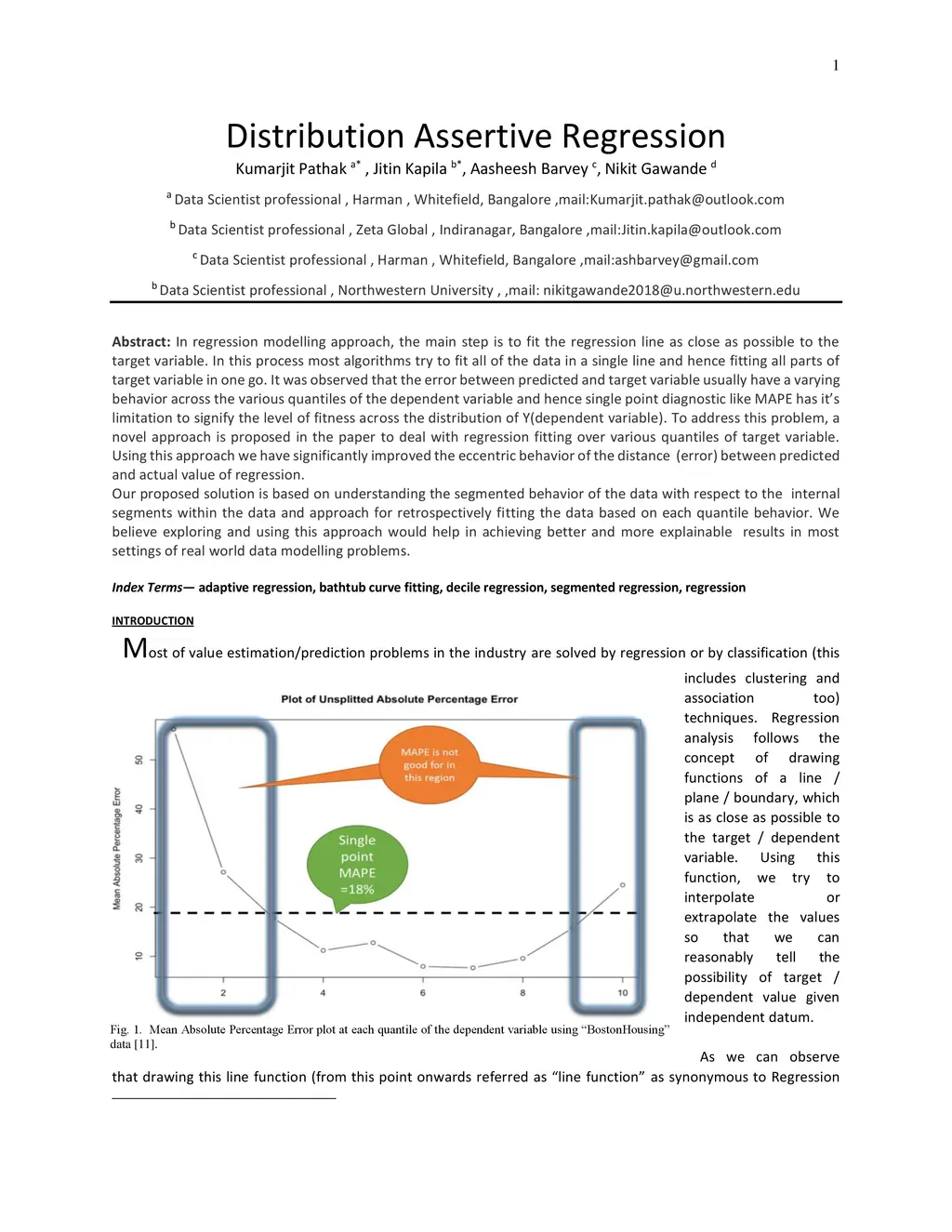In regression modelling approach, the main step is to fit the regression line as close as possible to the target variable. In this process most algorithms try to fit all of the data in a single line and hence fitting all parts of target variable in one go. It was observed that the error between predicted and target variable usually have a varying behavior across the various quantiles of the dependent variable and hence single point diagnostic like MAPE has its limitation to signify the level of fitness across the distribution of Y(dependent variable). To address this problem, a novel approach is proposed in the paper to deal with regression fitting over various quantiles of target variable. Using this approach we have significantly improved the eccentric behavior of the distance (error) between predicted and actual value of regression. Our proposed solution is based on understanding the segmented behavior of the data with respect to the internal segments within the data and approach for retrospectively fitting the data based on each quantile behavior. We believe exploring and using this approach would help in achieving better and more explainable results in most settings of real world data modelling problems.