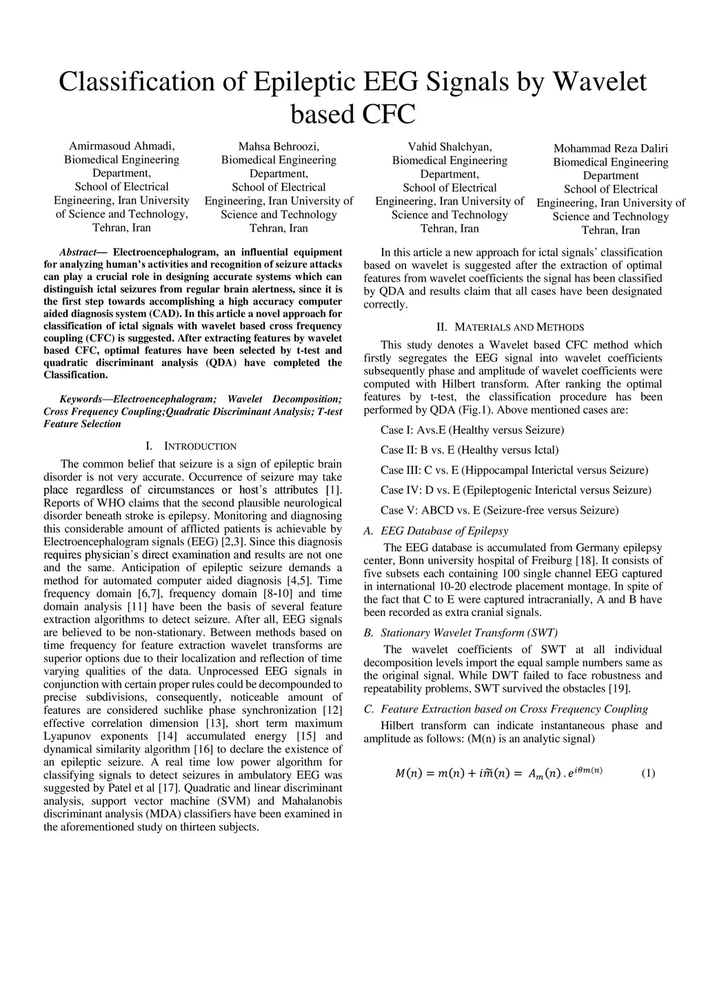 Classification of Epileptic EEG Signals by Wavelet based CFC