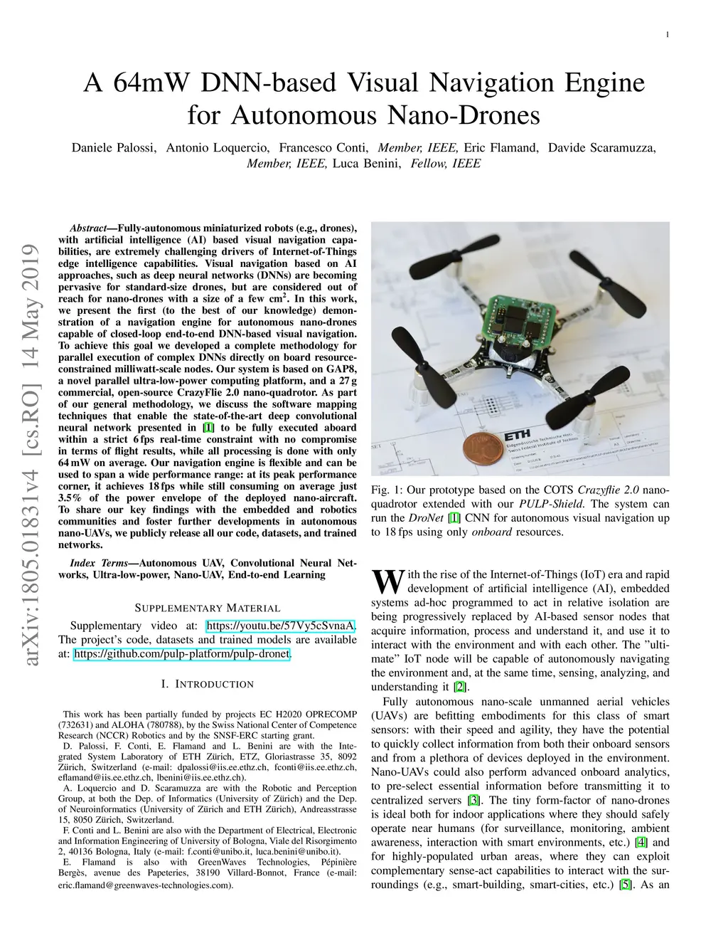 A 64mW DNN-based Visual Navigation Engine for Autonomous Nano-Drones