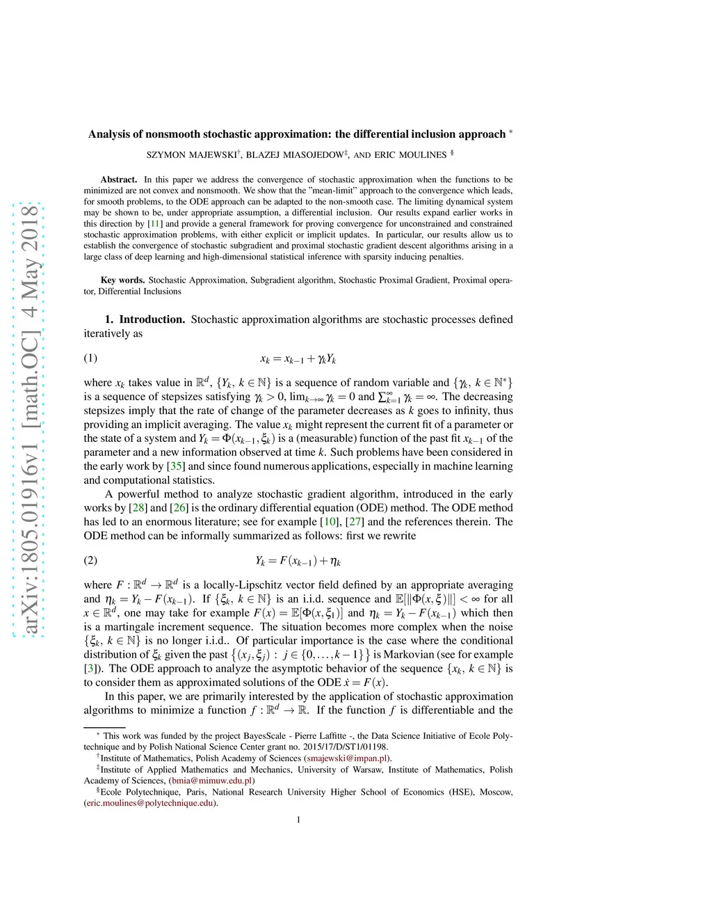 In this paper we address the convergence of stochastic approximation when the functions to be minimized are not convex and nonsmooth. We show that the "mean-limit" approach to the convergence which leads, for smooth problems, to the ODE approach can be adapted to the non-smooth case. The limiting dynamical system may be shown to be, under appropriate assumption, a differential inclusion. Our results expand earlier works in this direction by Benaim et al. (2005) and provide a general framework for proving convergence for unconstrained and constrained stochastic approximation problems, with either explicit or implicit updates. In particular, our results allow us to establish the convergence of stochastic subgradient and proximal stochastic gradient descent algorithms arising in a large class of deep learning and high-dimensional statistical inference with sparsity inducing penalties.