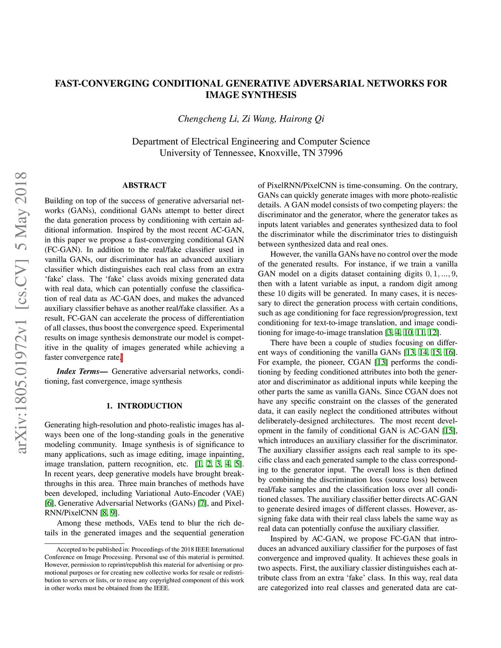 Fast-converging Conditional Generative Adversarial Networks for Image