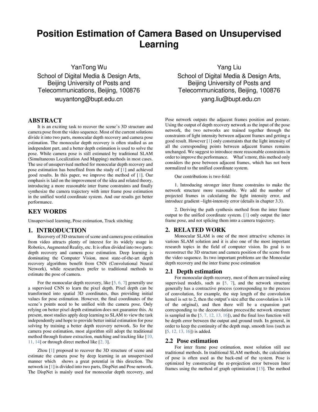 Position Estimation of Camera Based on Unsupervised Learning