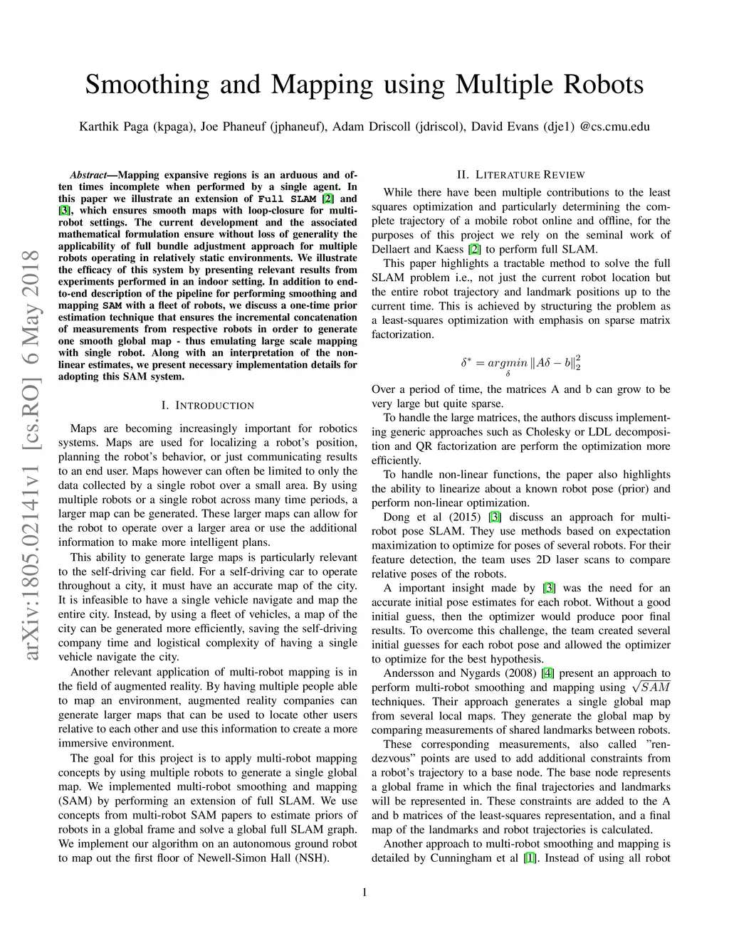 Smoothing and Mapping using Multiple Robots
