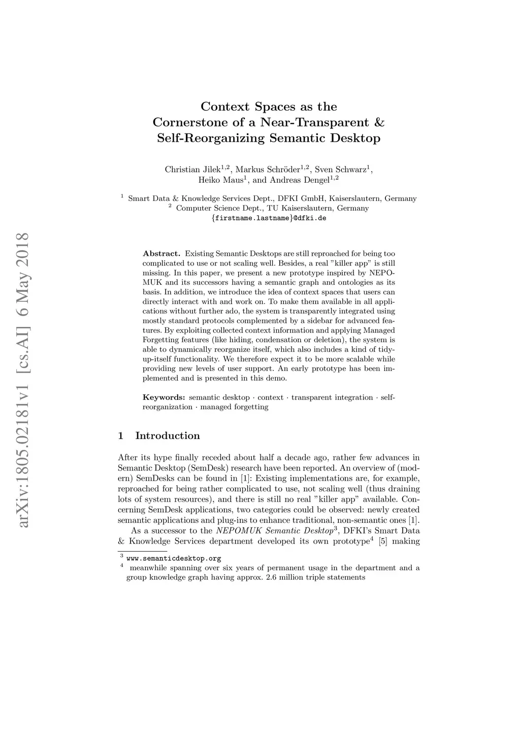 Existing Semantic Desktops are still reproached for being too complicated to use or not scaling well. Besides, a real "killer app" is still missing. In this paper, we present a new prototype inspired by NEPOMUK and its successors having a semantic graph and ontologies as its basis. In addition, we introduce the idea of context spaces that users can directly interact with and work on. To make them available in all applications without further ado, the system is transparently integrated using mostly standard protocols complemented by a sidebar for advanced features. By exploiting collected context information and applying Managed Forgetting features (like hiding, condensation or deletion), the system is able to dynamically reorganize itself, which also includes a kind of tidy-up-itself functionality. We therefore expect it to be more scalable while providing new levels of user support. An early prototype has been implemented and is presented in this demo.