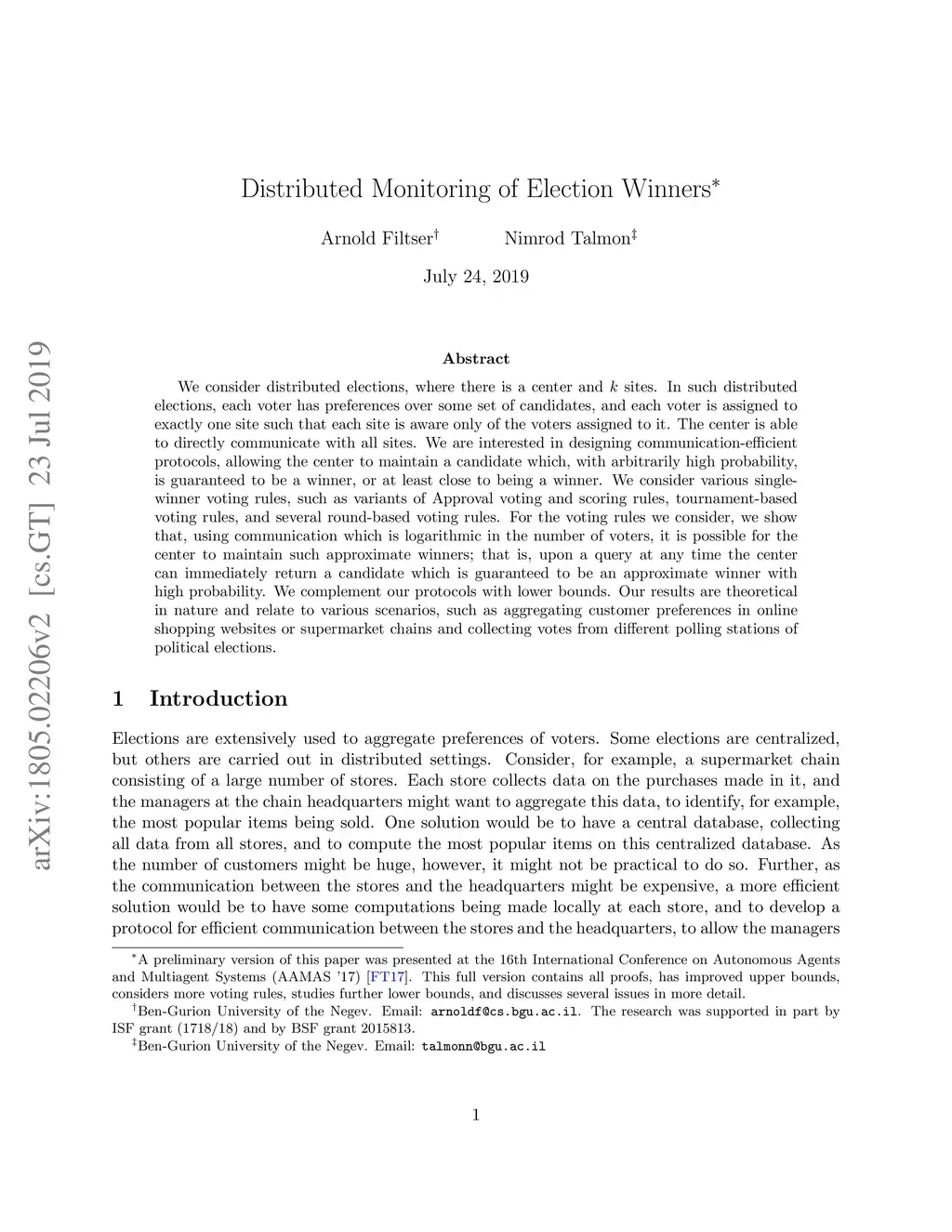 Distributed Monitoring of Election Winners