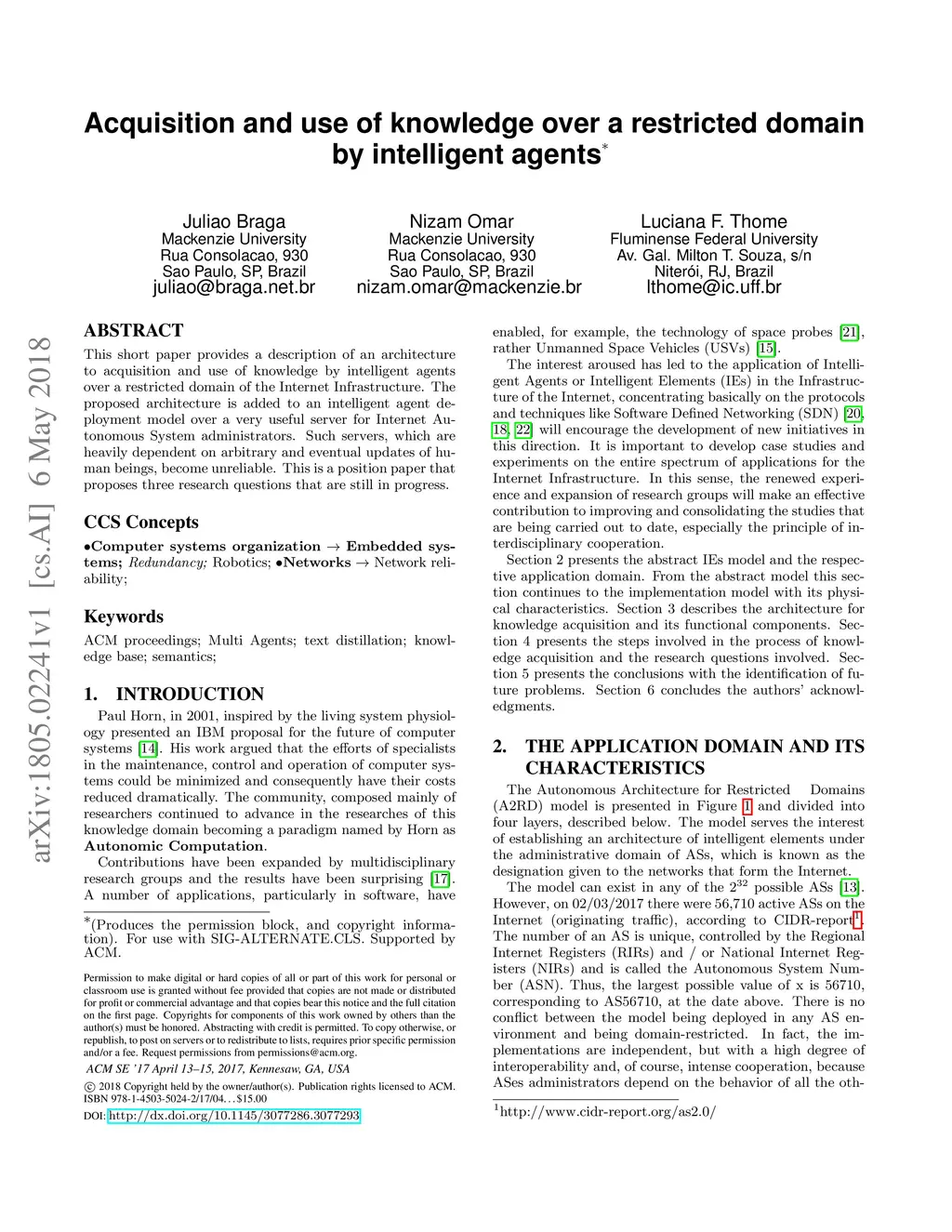 This short paper provides a description of an architecture to acquisition and use of knowledge by intelligent agents over a restricted domain of the Internet Infrastructure. The proposed architecture is added to an intelligent agent deployment model over a very useful server for Internet Autonomous System administrators. Such servers, which are heavily dependent on arbitrary and eventual updates of human beings, become unreliable. This is a position paper that proposes three research questions that are still in progress.