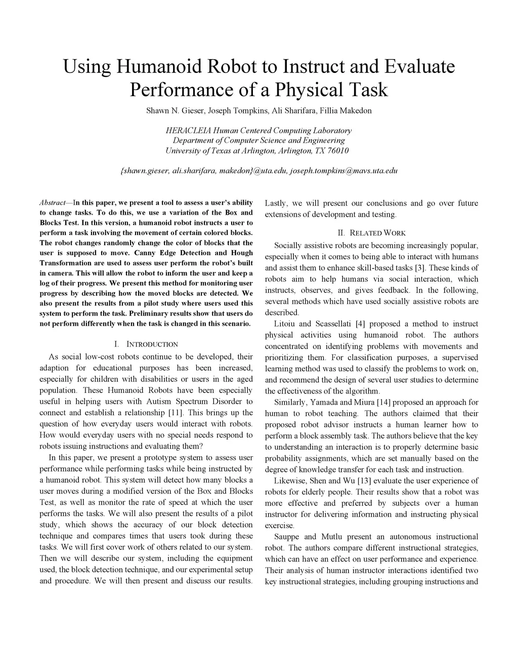 Using Humanoid Robot to Instruct and Evaluate Performance of a Physical