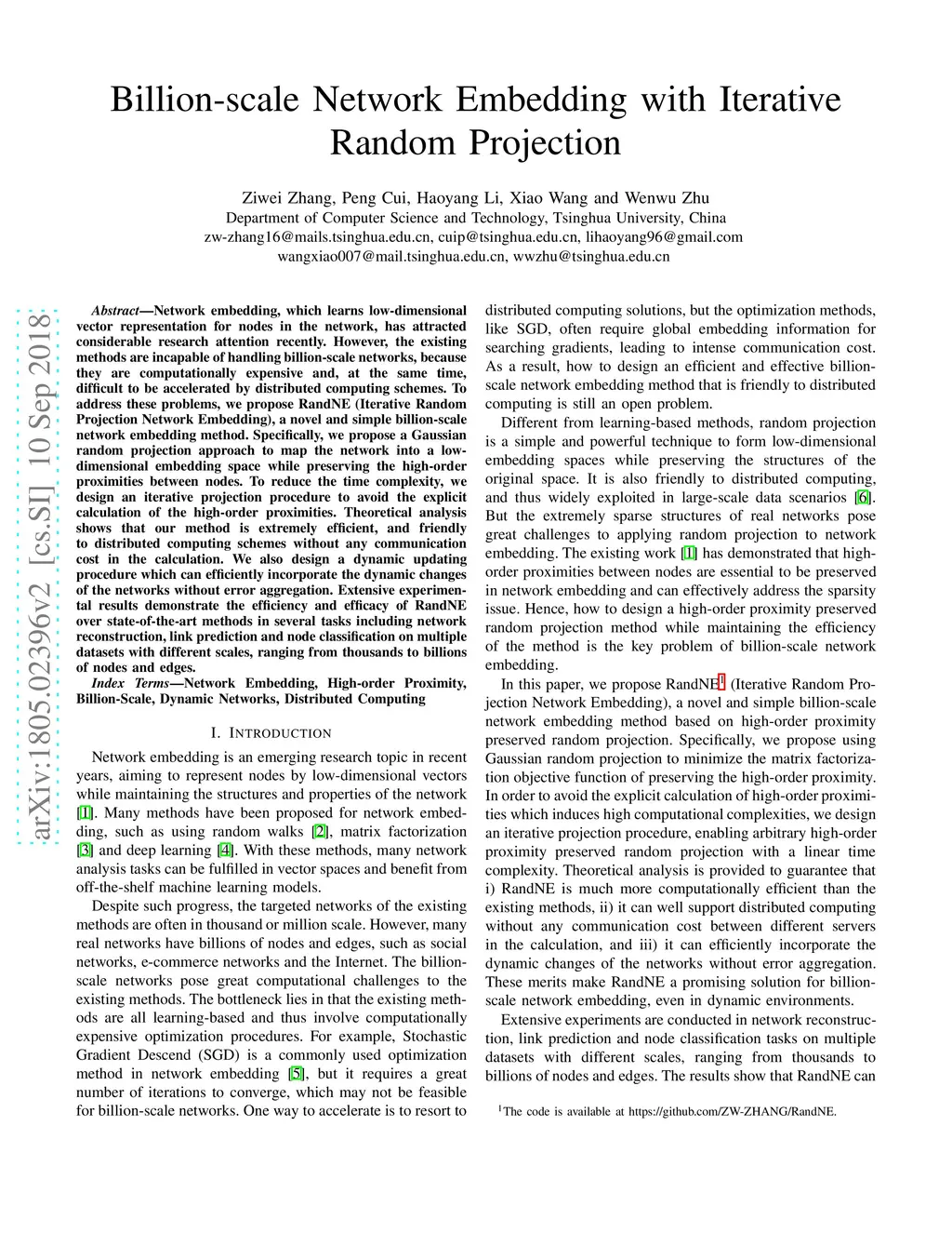 Billion-scale Network Embedding with Iterative Random Projection
