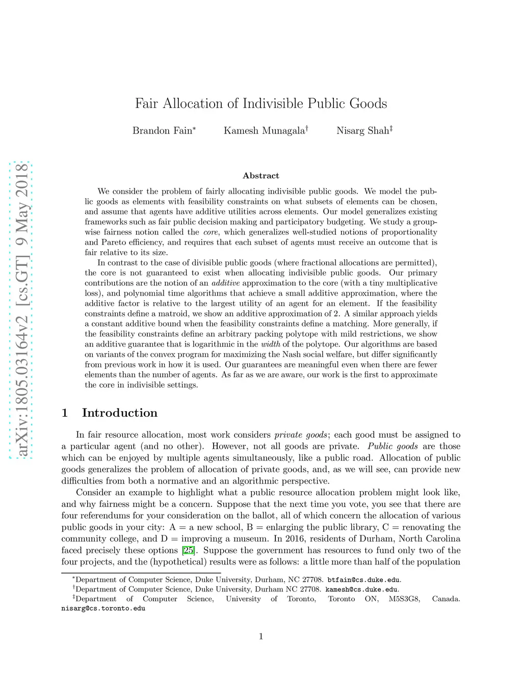 We consider the problem of fairly allocating indivisible public goods. We model the public goods as elements with feasibility constraints on what subsets of elements can be chosen, and assume that agents have additive utilities across elements. Our model generalizes existing frameworks such as fair public decision making and participatory budgeting. We study a groupwise fairness notion called the core, which generalizes well-studied notions of proportionality and Pareto efficiency, and requires that each subset of agents must receive an outcome that is fair relative to its size. In contrast to the case of divisible public goods (where fractional allocations are permitted), the core is not guaranteed to exist when allocating indivisible public goods. Our primary contributions are the notion of an additive approximation to the core (with a tiny multiplicative loss), and polynomial time algorithms that achieve a small additive approximation, where the additive factor is relative to the largest utility of an agent for an element. If the feasibility constraints define a matroid, we show an additive approximation of 2. A similar approach yields a constant additive bound when the feasibility constraints define a matching. More generally, if the feasibility constraints define an arbitrary packing polytope with mild restrictions, we show an additive guarantee that is logarithmic in the width of the polytope. Our algorithms are based on variants of the convex program for maximizing the Nash social welfare, but differ significantly from previous work in how it is used. Our guarantees are meaningful even when there are fewer elements than the number of agents. As far as we are aware, our work is the first to approximate the core in indivisible settings.