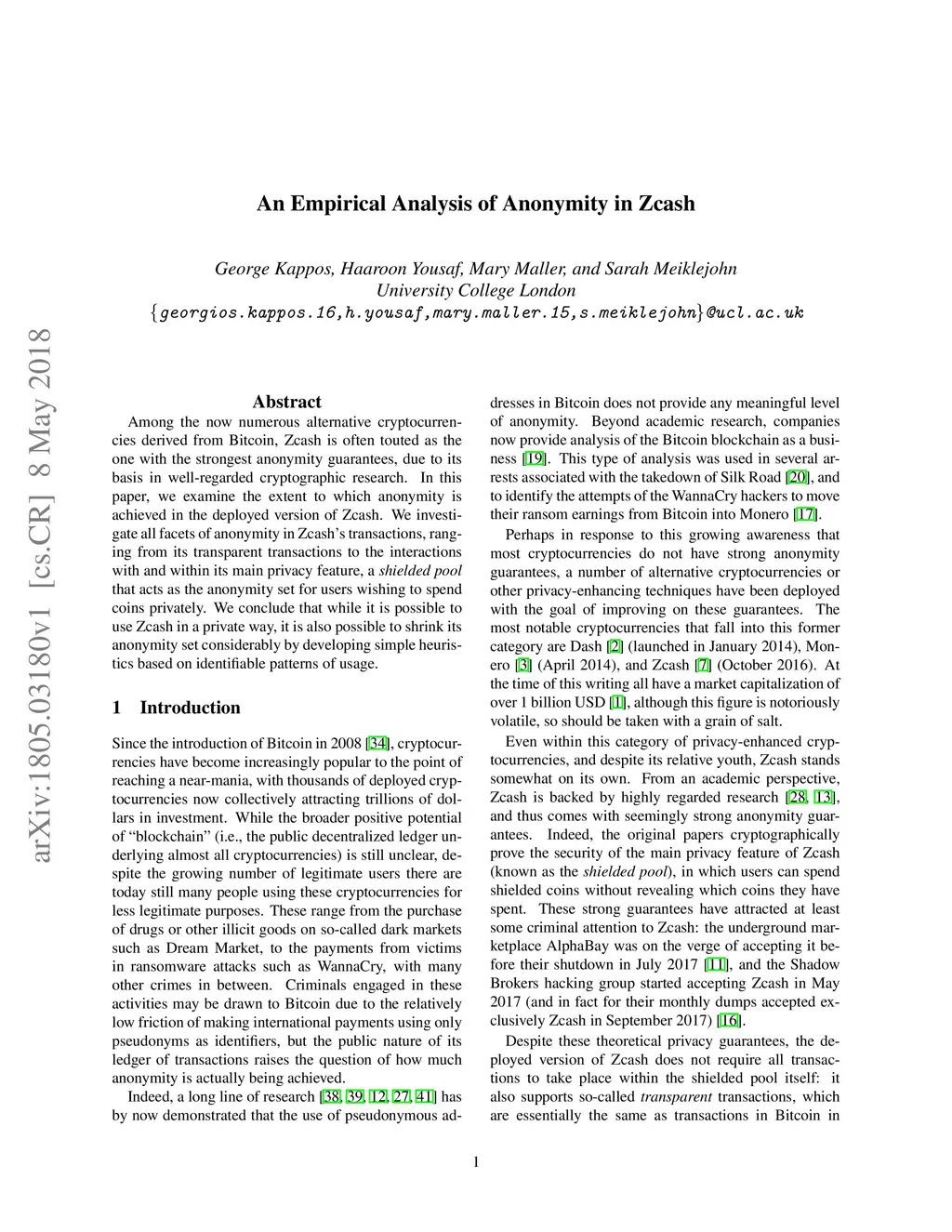 An Empirical Analysis of Anonymity in Zcash