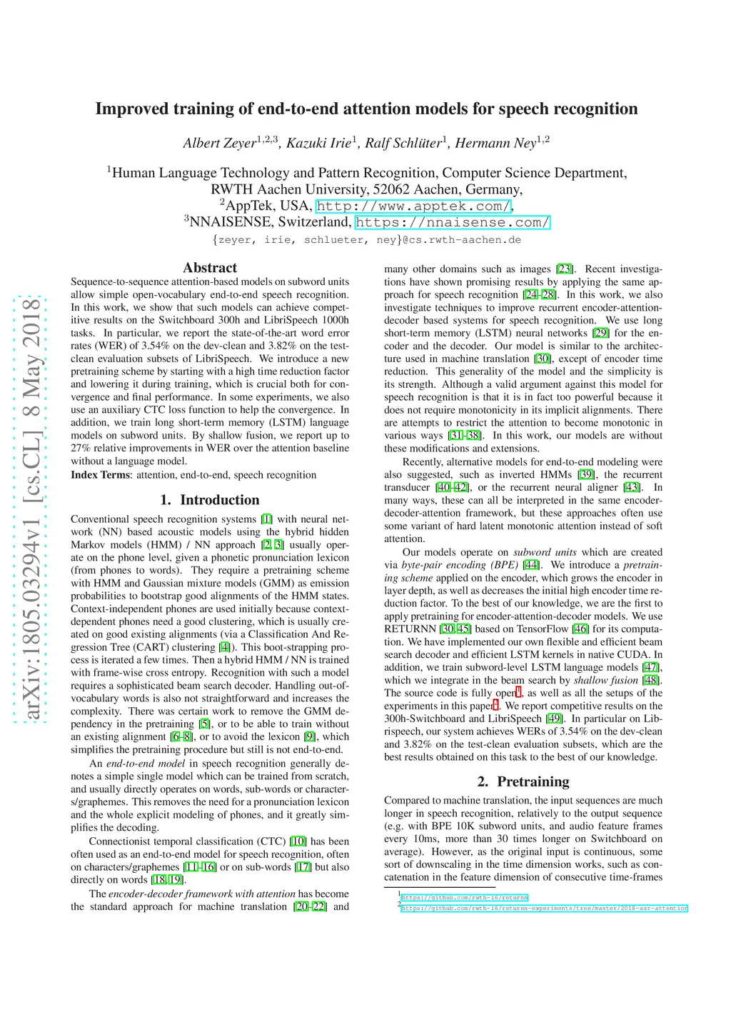 Sequence-to-sequence attention-based models on subword units allow simple open-vocabulary end-to-end speech recognition. In this work, we show that such models can achieve competitive results on the Switchboard 300h and LibriSpeech 1000h tasks. In particular, we report the state-of-the-art word error rates (WER) of 3.54% on the dev-clean and 3.82% on the test-clean evaluation subsets of LibriSpeech. We introduce a new pretraining scheme by starting with a high time reduction factor and lowering it during training, which is crucial both for convergence and final performance. In some experiments, we also use an auxiliary CTC loss function to help the convergence. In addition, we train long short-term memory (LSTM) language models on subword units. By shallow fusion, we report up to 27% relative improvements in WER over the attention baseline without a language model.