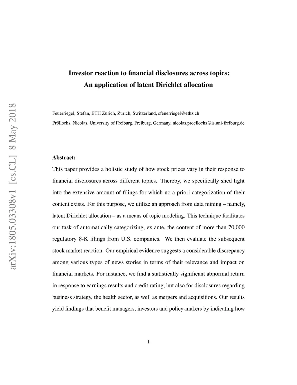 Investor Reaction to Financial Disclosures Across Topics: An Application