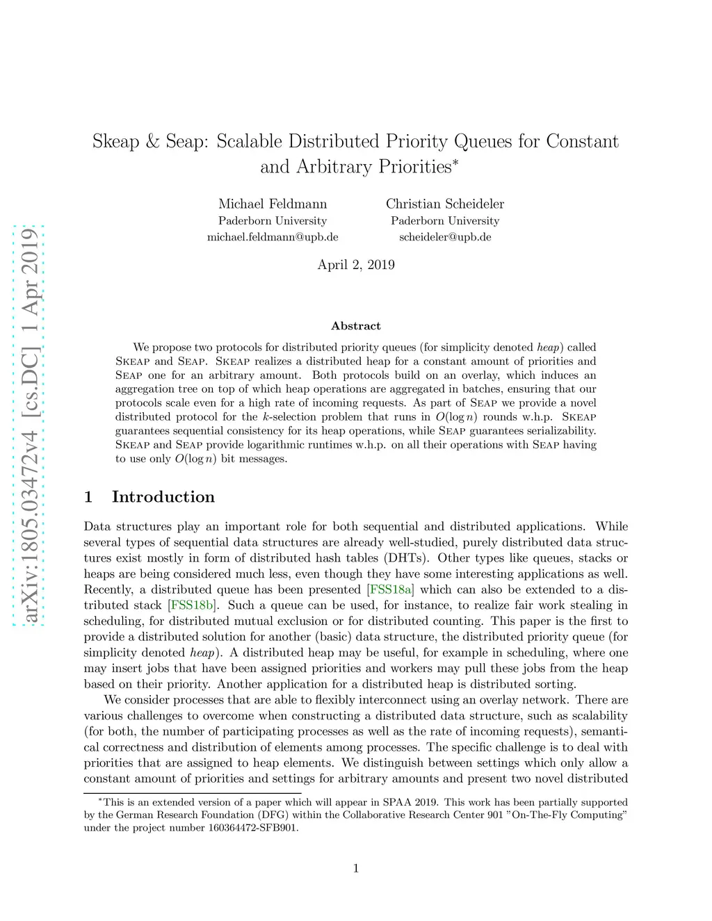 We propose two protocols for distributed priority queues (denoted by 'heap' for simplicity in this paper) called SKEAP and SEAP. SKEAP realizes a distributed heap for a constant amount of priorities and SEAP one for an arbitrary amount. Both protocols build on an overlay, which induces an aggregation tree on which heap operations are aggregated in batches, ensuring that our protocols scale even for a high rate of incoming requests. As part of SEAP we provide a novel distributed protocol for the -selection problem that runs in time w.h.p. SKEAP guarantees sequential consistency for its heap operations, while SEAP guarantees serializability. SKEAP and SEAP provide logarithmic runtimes w.h.p. on all their operations.