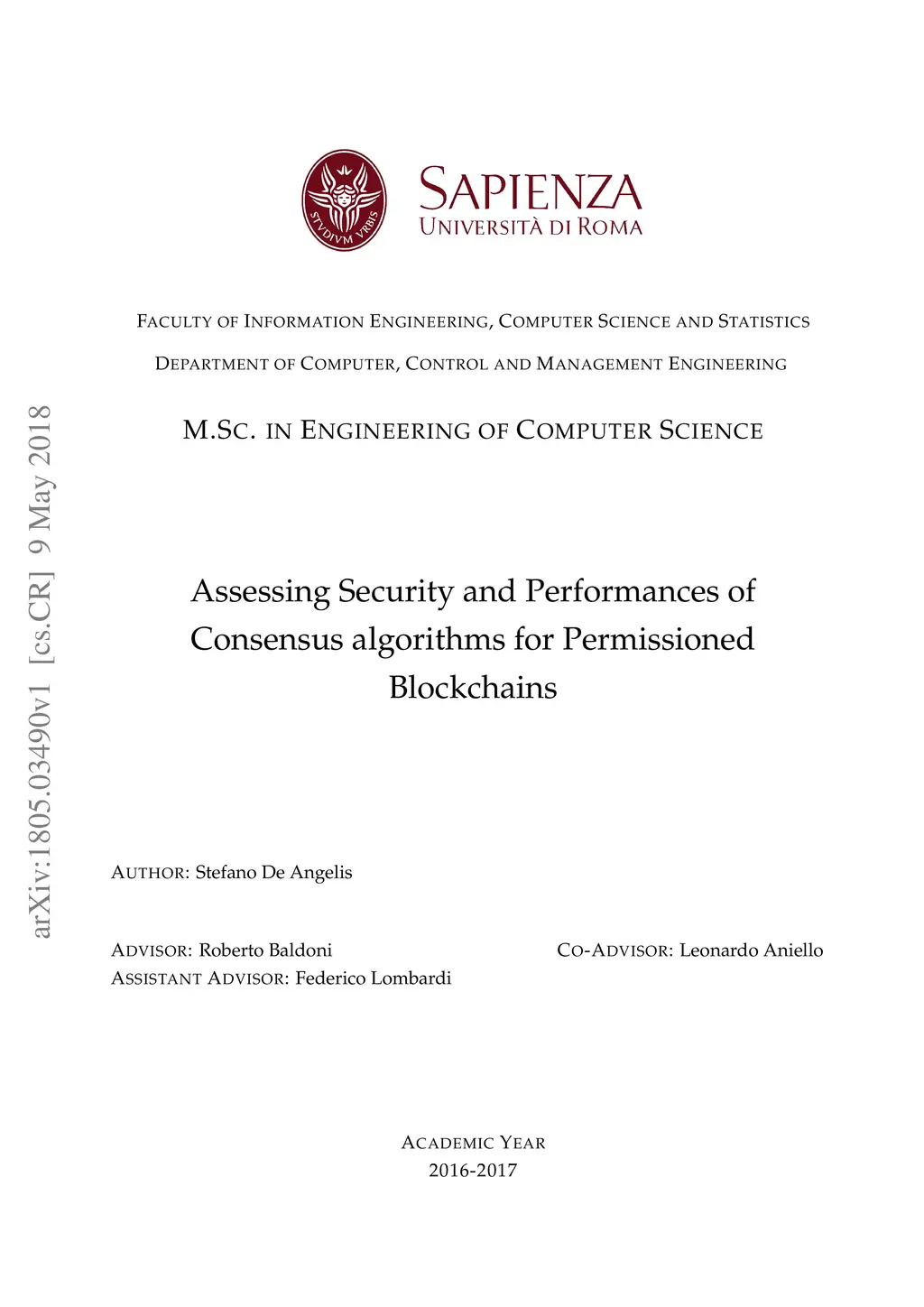 Blockchain is a novel technology that is rising a lot of interest in the industrial and re- search sectors because its properties of decentralisation, immutability and data integrity. Initially, the underlying consensus mechanism has been designed for permissionless block- chain on trustless network model through the proof-of-work, i.e. a mathematical challenge which requires high computational power. This solution suffers of poor performances, hence alternative consensus algorithms as the proof-of-stake have been proposed. Conversely, for permissioned blockchain, where participants are known and authenti- cated, variants of distributed consensus algorithms have been employed. However, most of them comes out without formal expression of security analysis and trust assumptions because the absence of an established knowledge. Therefore the lack of adequate analysis on these algorithms hinders any cautious evaluation of their effectiveness in a real-world setting where systems are deployed over trustless networks, i.e. Internet ...