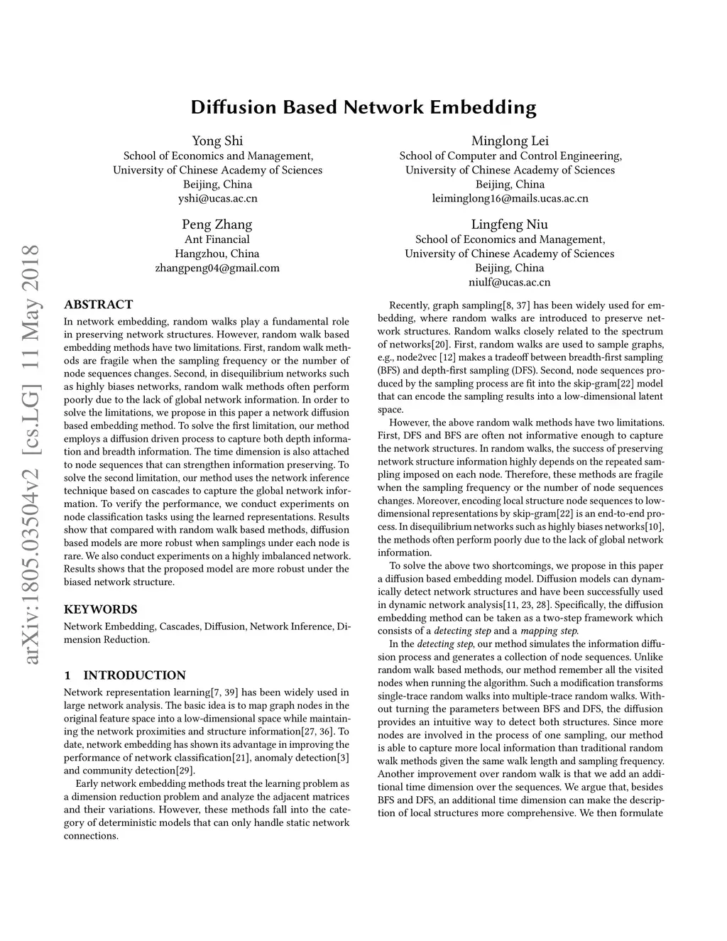 Diffusion Based Network Embedding