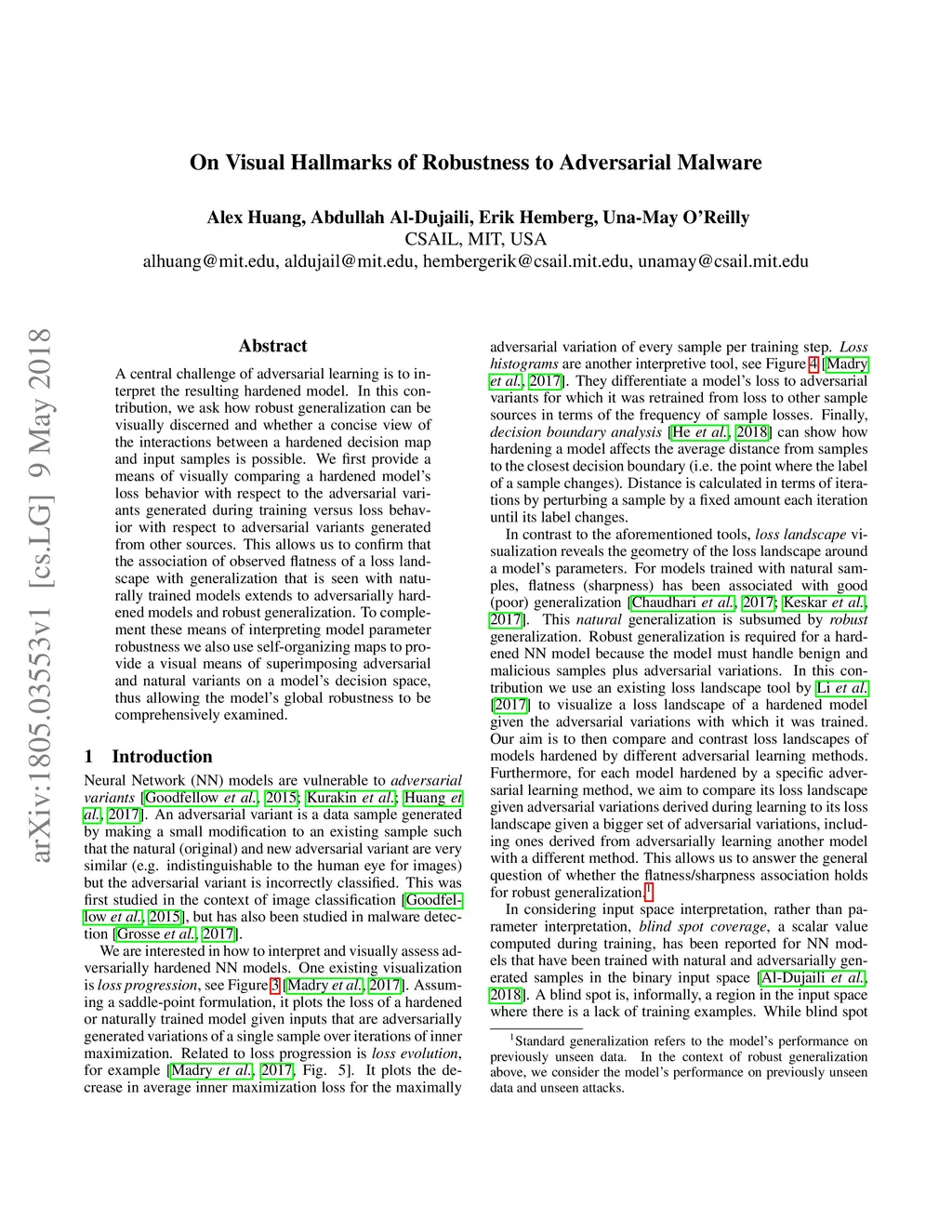 A central challenge of adversarial learning is to interpret the resulting hardened model. In this contribution, we ask how robust generalization can be visually discerned and whether a concise view of the interactions between a hardened decision map and input samples is possible. We first provide a means of visually comparing a hardened model's loss behavior with respect to the adversarial variants generated during training versus loss behavior with respect to adversarial variants generated from other sources. This allows us to confirm that the association of observed flatness of a loss landscape with generalization that is seen with naturally trained models extends to adversarially hardened models and robust generalization. To complement these means of interpreting model parameter robustness we also use self-organizing maps to provide a visual means of superimposing adversarial and natural variants on a model's decision space, thus allowing the model's global robustness to be comprehensively examined.