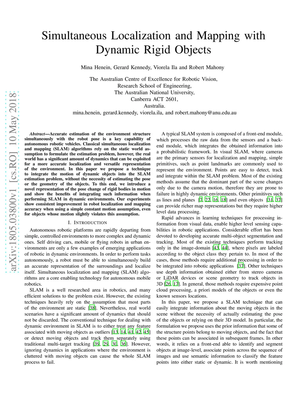 Simultaneous Localization and Mapping with Dynamic Rigid Objects