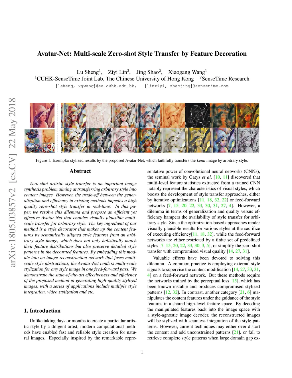 Avatar-Net: Multi-scale Zero-shot Style Transfer by Feature Decoration