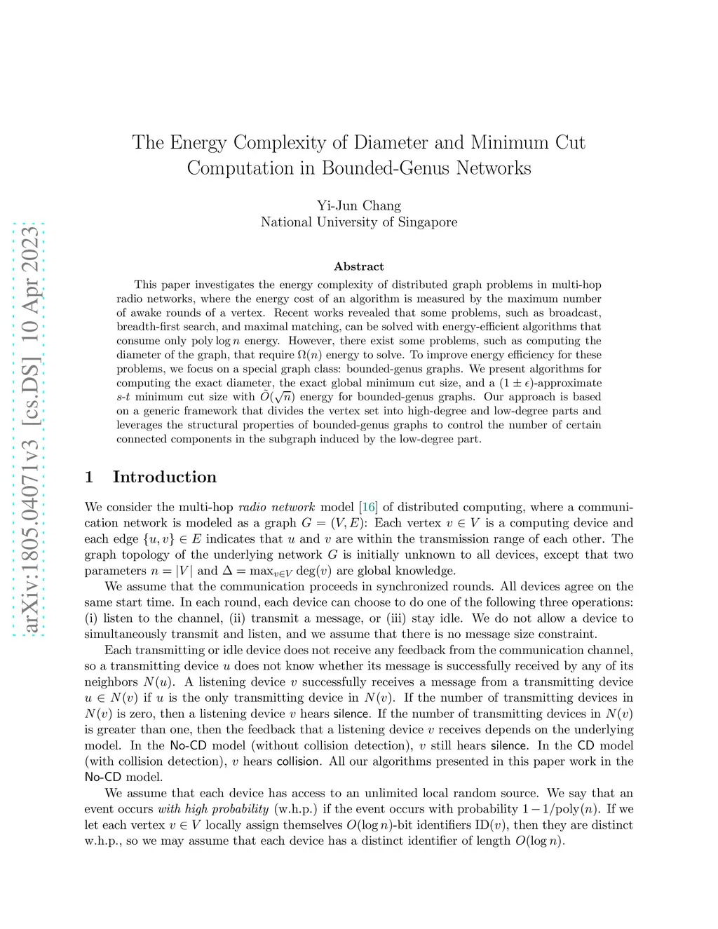 Energy efficiency is a critical issue for wireless devices operated under stringent power constraint (e.g., battery). Following prior works, we measure the energy cost of a device by its transceiver usage, and define the energy complexity of an algorithm as the maximum number of time slots a device transmits or listens, over all devices. In a recent paper of Chang et al. (PODC 2018), it was shown that broadcasting in a multi-hop network of unknown topology can be done in energy. In this paper, we continue this line of research, and investigate the energy complexity of other fundamental graph problems in multi-hop networks. Our results are summarized as follows. 1. To avoid spending energy, the broadcasting protocols of Chang et al. (PODC 2018) do not send the message along a BFS tree, and it is open whether BFS could be computed in energy, for sufficiently large . In this paper we devise an algorithm that attains energy cost. 2. We show that the framework of the round lower bound proof for computing diameter in CONGEST of Abboud et al. (DISC 2017) can be adapted to give an energy lower bound in the wireless network model (with no message size constraint), and this lower bound applies to -arboricity graphs. From the upper bound side, we show that the energy complexity of can be attained for bounded-genus graphs (which includes planar graphs). 3. Our upper bounds for computing diameter can be extended to other graph problems. We show that exact global minimum cut or approximate -- minimum cut can be computed in energy for bounded-genus graphs.
