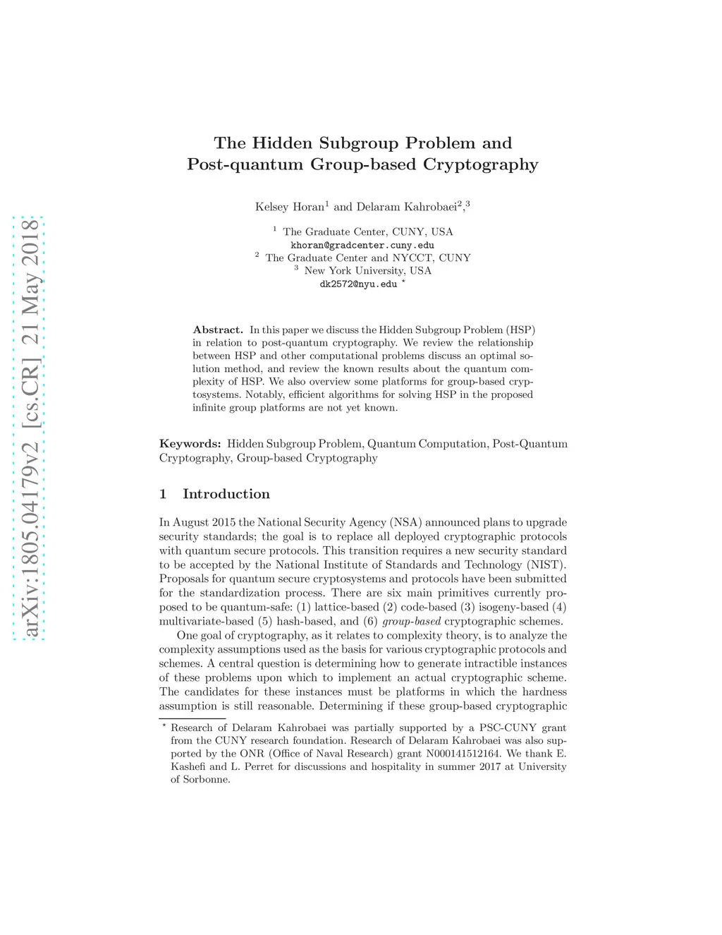 The Hidden Subgroup Problem and Post-quantum Group-based Cryptography