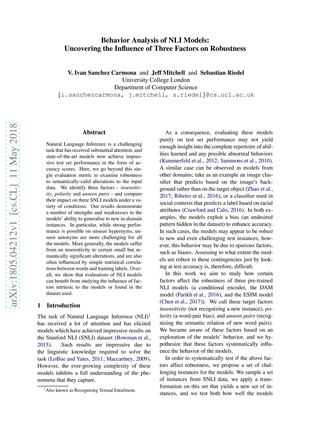 Behavior Analysis of NLI Models: Uncovering the Influence of Three