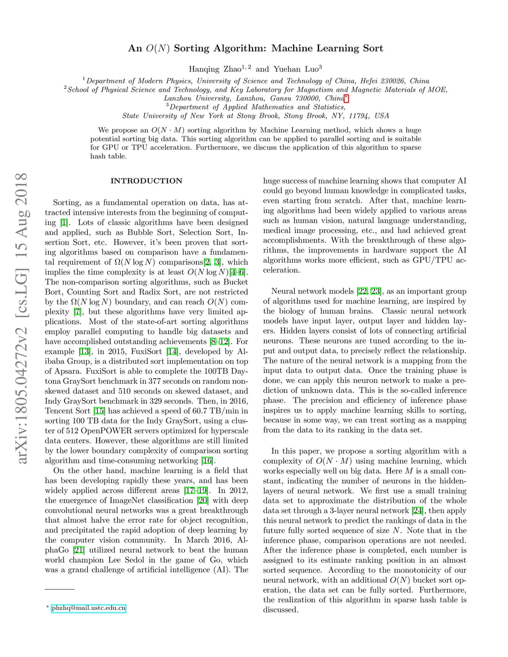 We propose an sorting algorithm by Machine Learning method, which shows a huge potential sorting big data. This sorting algorithm can be applied to parallel sorting and is suitable for GPU or TPU acceleration. Furthermore, we discuss the application of this algorithm to sparse hash table.