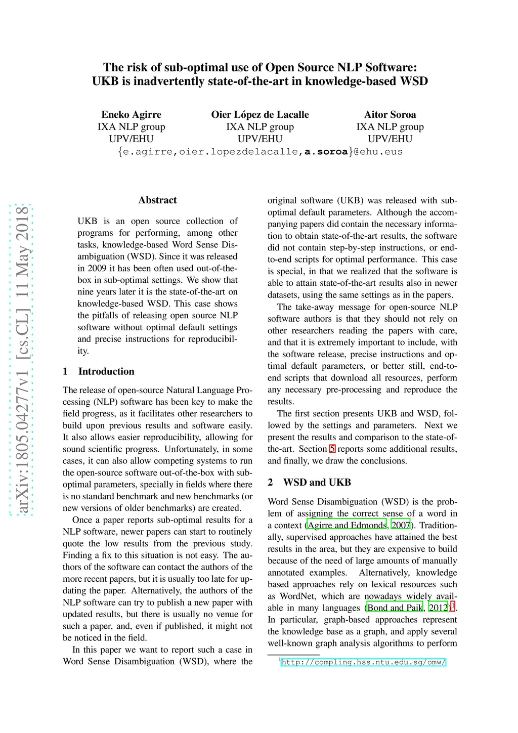 UKB is an open source collection of programs for performing, among other tasks, knowledge-based Word Sense Disambiguation (WSD). Since it was released in 2009 it has been often used out-of-the-box in sub-optimal settings. We show that nine years later it is the state-of-the-art on knowledge-based WSD. This case shows the pitfalls of releasing open source NLP software without optimal default settings and precise instructions for reproducibility.