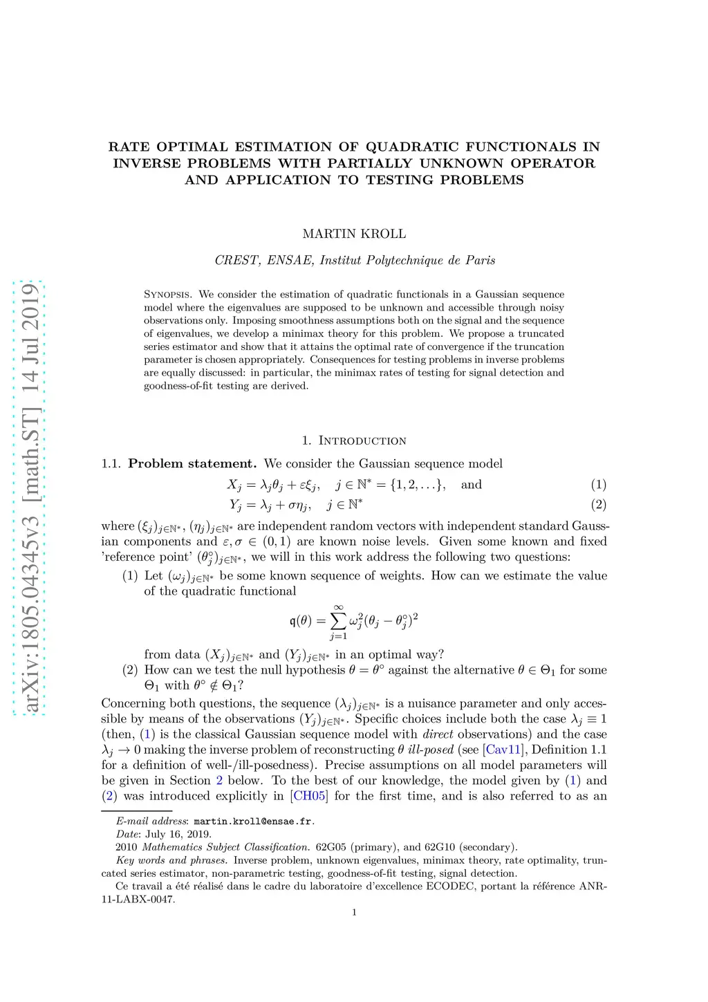 We consider the estimation of quadratic functionals in a Gaussian sequence model where the eigenvalues are supposed to be unknown and accessible through noisy observations only. Imposing smoothness assumptions both on the signal and the sequence of eigenvalues, we develop a minimax theory for this problem. We propose a truncated series estimator and show that it attains the optimal rate of convergence if the truncation parameter is chosen appropriately. Consequences for testing problems in inverse problems are equally discussed: in particular, the minimax rates of testing for signal detection and goodness-of-fit testing are derived.
