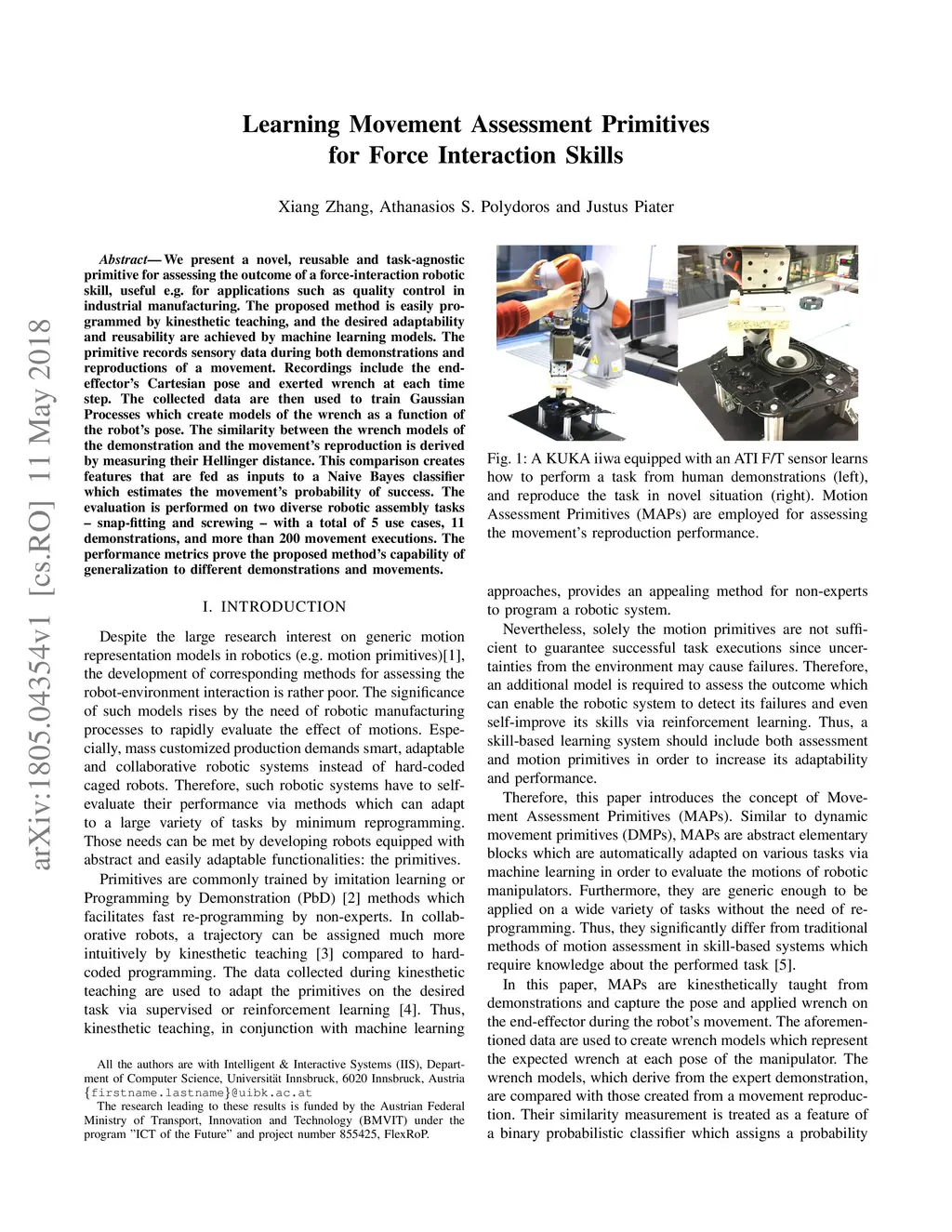 Learning Movement Assessment Primitives for Force Interaction Skills