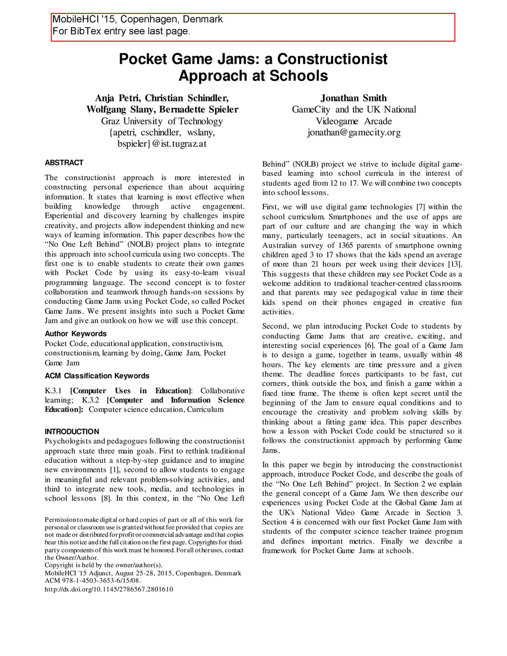 Pocket Game Jams: a Constructionist Approach at Schools