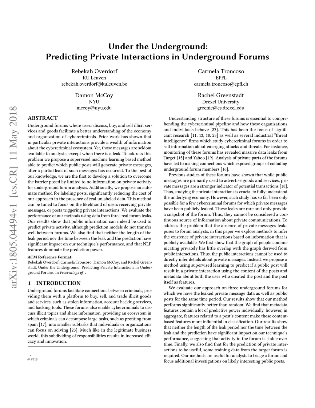 Under the Underground: Predicting Private Interactions in Underground