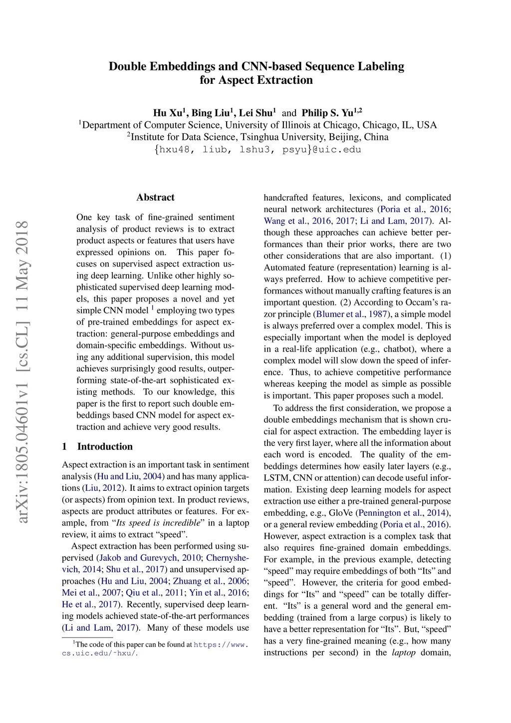 Double Embeddings and CNN-based Sequence Labeling for Aspect Extraction