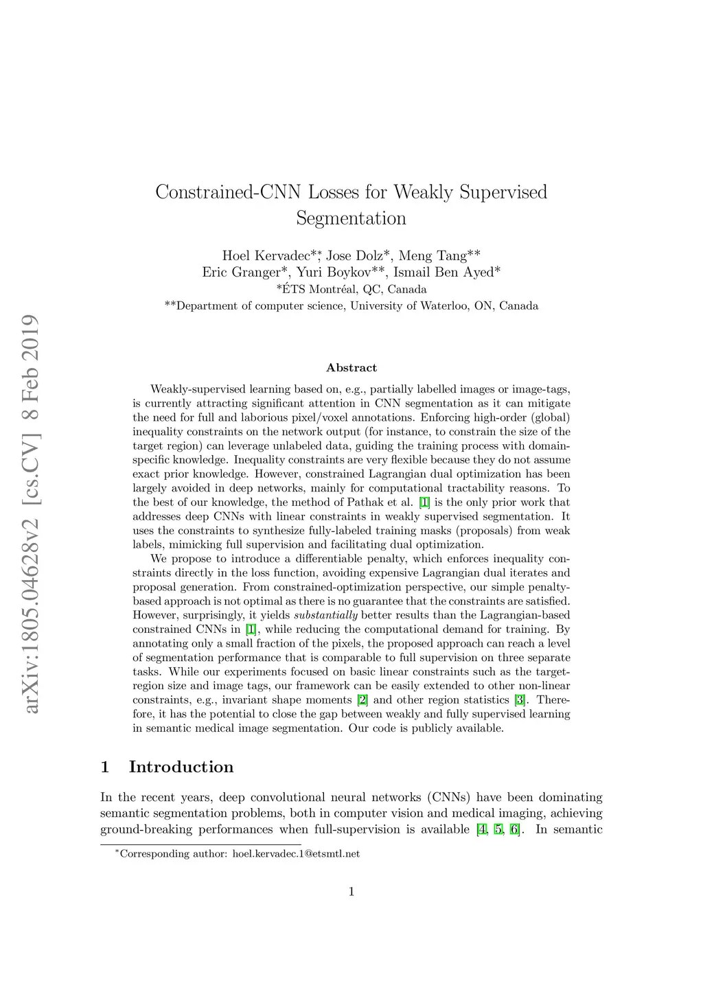 Constrained-CNN losses for weakly supervised segmentation