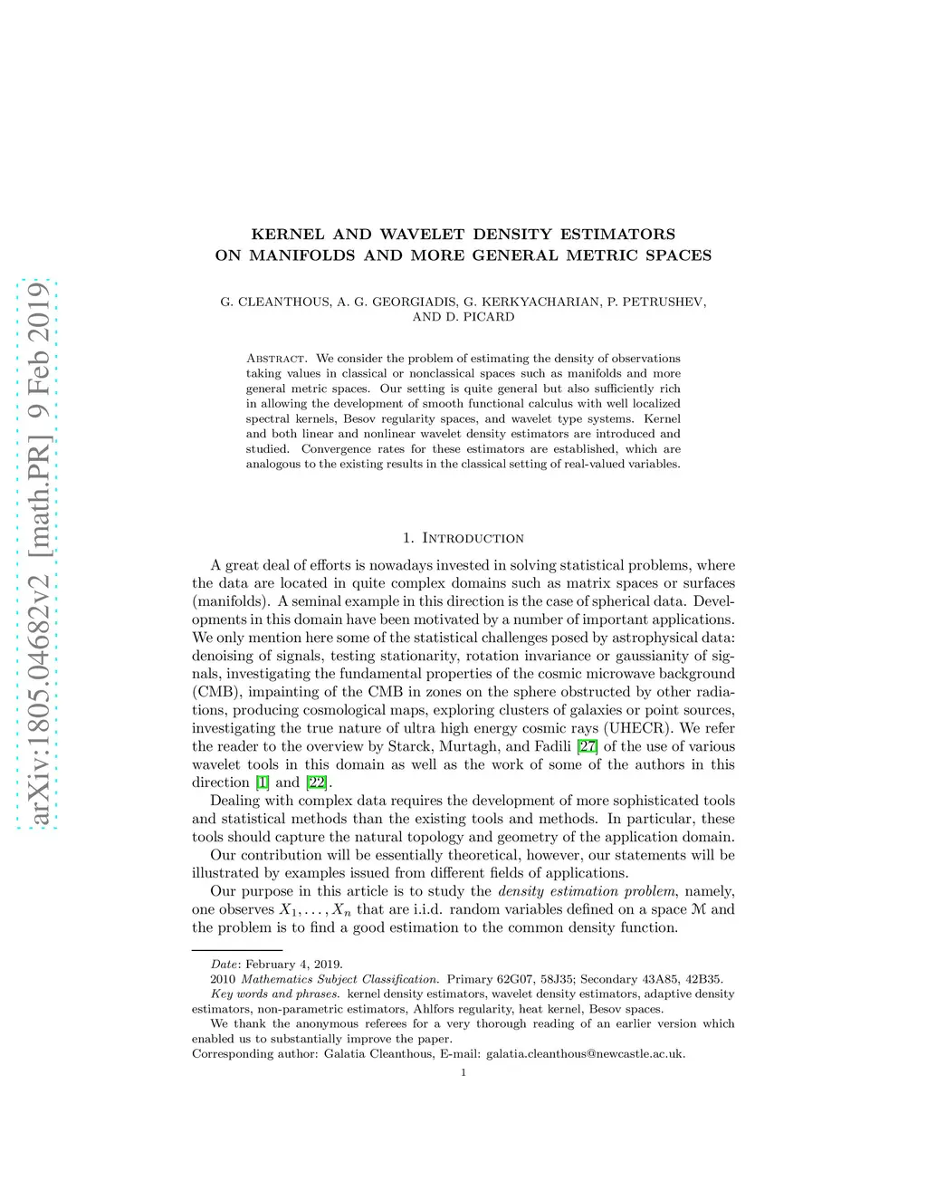 We consider the problem of estimating the density of observations taking values in classical or nonclassical spaces such as manifolds and more general metric spaces. Our setting is quite general but also sufficiently rich in allowing the development of smooth functional calculus with well localized spectral kernels, Besov regularity spaces, and wavelet type systems. Kernel and both linear and nonlinear wavelet density estimators are introduced and studied. Convergence rates for these estimators are established, which are analogous to the existing results in the classical setting of real-valued variables.