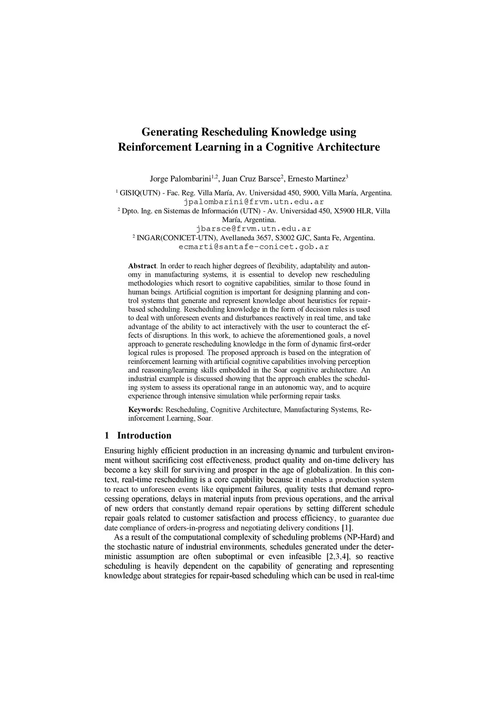 In order to reach higher degrees of flexibility, adaptability and autonomy in manufacturing systems, it is essential to develop new rescheduling methodologies which resort to cognitive capabilities, similar to those found in human beings. Artificial cognition is important for designing planning and control systems that generate and represent knowledge about heuristics for repair-based scheduling. Rescheduling knowledge in the form of decision rules is used to deal with unforeseen events and disturbances reactively in real time, and take advantage of the ability to act interactively with the user to counteract the effects of disruptions. In this work, to achieve the aforementioned goals, a novel approach to generate rescheduling knowledge in the form of dynamic first-order logical rules is proposed. The proposed approach is based on the integration of reinforcement learning with artificial cognitive capabilities involving perception and reasoning/learning skills embedded in the Soar cognitive architecture. An industrial example is discussed showing that the approach enables the scheduling system to assess its operational range in an autonomic way, and to acquire experience through intensive simulation while performing repair tasks.