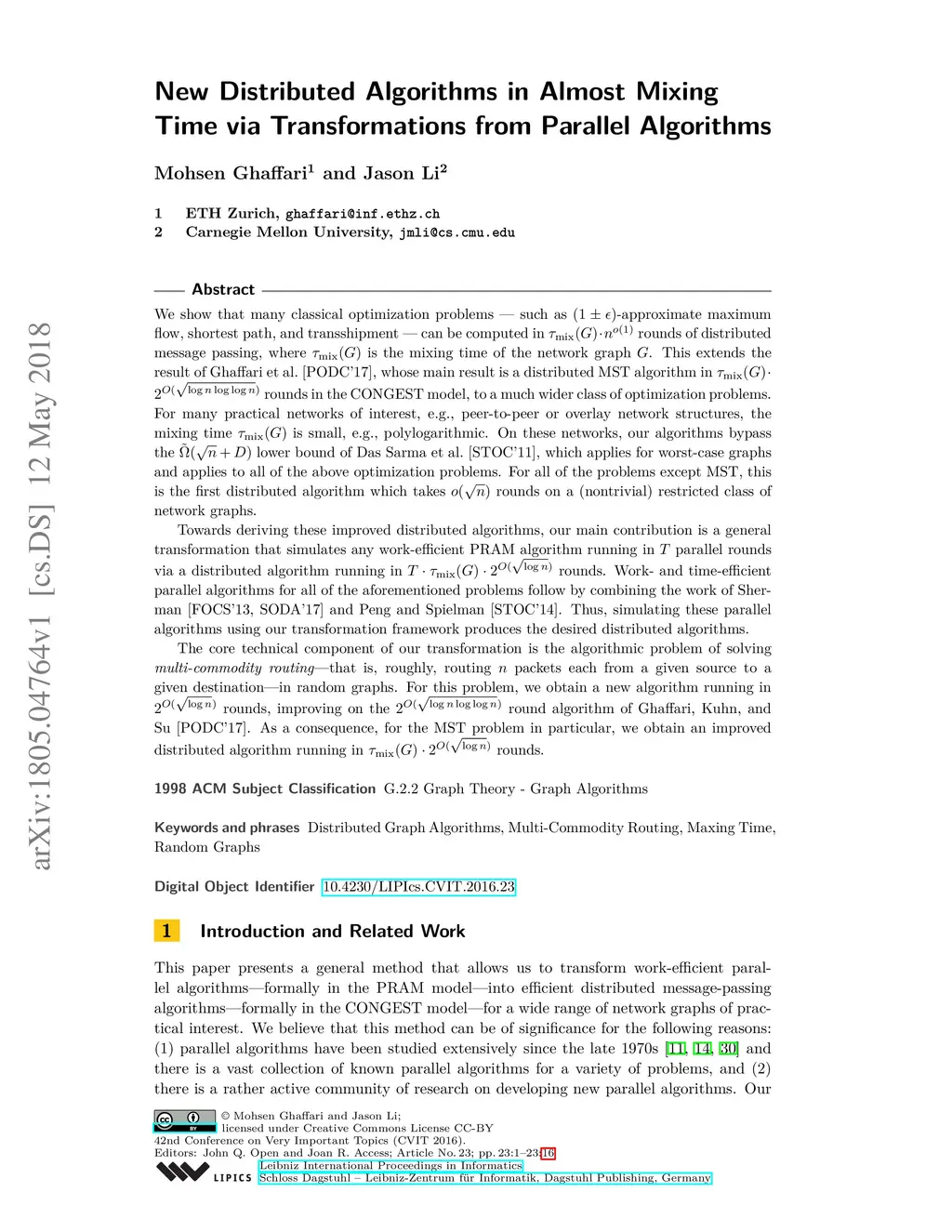We show that many classical optimization problems --- such as -approximate maximum flow, shortest path, and transshipment --- can be computed in rounds of distributed message passing, where is the mixing time of the network graph . This extends the result of Ghaffari et al.\ [PODC'17], whose main result is a distributed MST algorithm in rounds in the CONGEST model, to a much wider class of optimization problems. For many practical networks of interest, e.g., peer-to-peer or overlay network structures, the mixing time is small, e.g., polylogarithmic. On these networks, our algorithms bypass the lower bound of Das Sarma et al.\ [STOC'11], which applies for worst-case graphs and applies to all of the above optimization problems. For all of the problems except MST, this is the first distributed algorithm which takes rounds on a (nontrivial) restricted class of network graphs. Towards deriving these improved distributed algorithms, our main contribution is a general transformation that simulates any work-efficient PRAM algorithm running in parallel rounds via a distributed algorithm running in rounds. Work- and time-efficient parallel algorithms for all of the aforementioned problems follow by combining the work of Sherman [FOCS'13, SODA'17] and Peng and Spielman [STOC'14]. Thus, simulating these parallel algorithms using our transformation framework produces the desired distributed algorithms. The core technical component of our transformation is the algorithmic problem of solving \emph{multi-commodity routing}---that is, roughly, routing packets each from a given source to a given destination---in random graphs. For this problem, we obtain a...